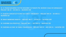 Dla zobrazowania, jak mocno spadÅ‚o w SuwaÅ‚kach zainteresowanie budżetem obywatelskim, wystarczy przypomnieć, że w 2019 roku uczestniczyÅ‚o w nim 17 200 osób, a już w nastÄ™pnym, pandemicznym roku, byÅ‚o ich tylko 8 600. Teraz jeszcze mniej, a przeważajÄ… już ci, którzy gÅ‚osujÄ… przez internet – 3500.