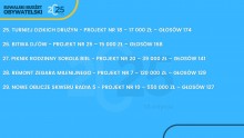 Drugie miejsce zajęło szacowane na 662 tys. zÅ‚ przedsiÄ™wziÄ™cie pod nazwÄ… „Kino Plenerowe na bulwarach z imprezami towarzyszÄ…cymi”, a na czwartej pozycji uplasowaÅ‚ siÄ™ projekt „PoukÅ‚adaj sobie raka” wartoÅ›ci 101 tys. zÅ‚.
