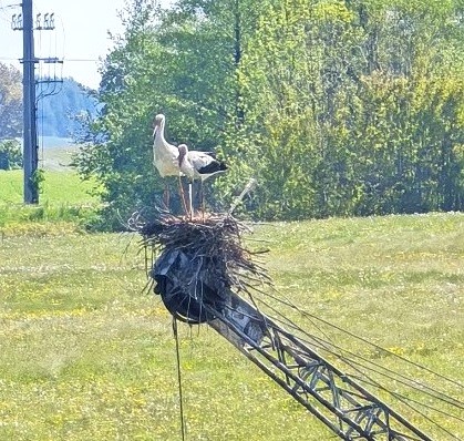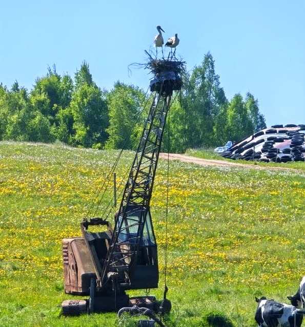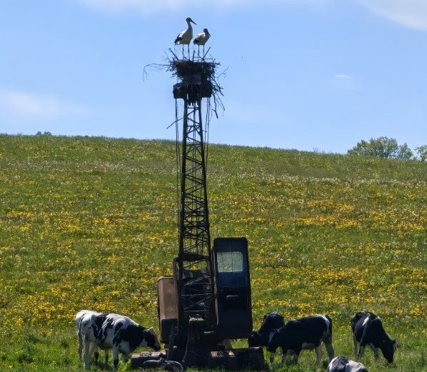 Pan Witold co roku rowerem przemierza Puszczę Romincką, ale robi także wypady do Suwalskiego Parku Krajobrazowego, Wiżajn, Rutki-Tartak, Szypliszk. Dzisiaj był zauroczony widokiem bocianów, które uwiły sobie gniazdo na szczycie wysięgnika maszyny, ustawionej na polu na trasie Szypliszki – Jasionowo.