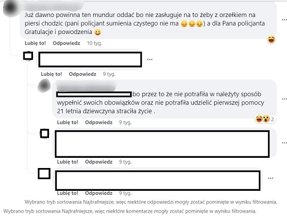 Mieszkanka Sejn na jednym z portali społecznościowych pisała obraźliwe komentarze i rozpowszechniała nieprawdziwe informacje na temat augustowskiej policjantki. Teraz zgodnie z wyrokiem sądu publicznie przeprasza.