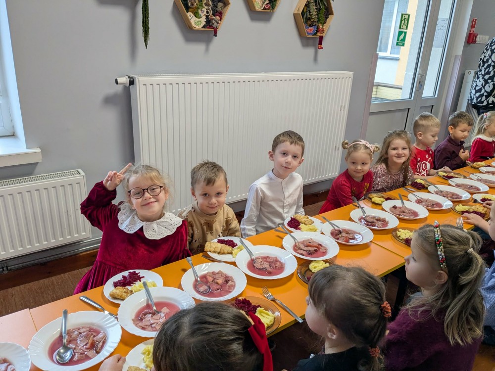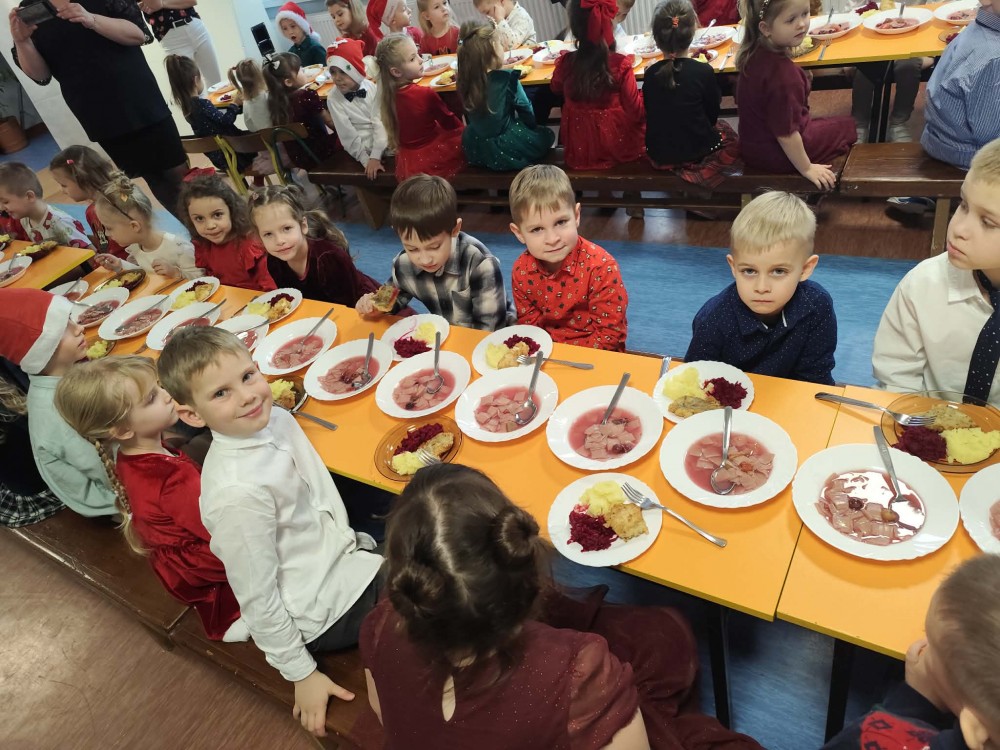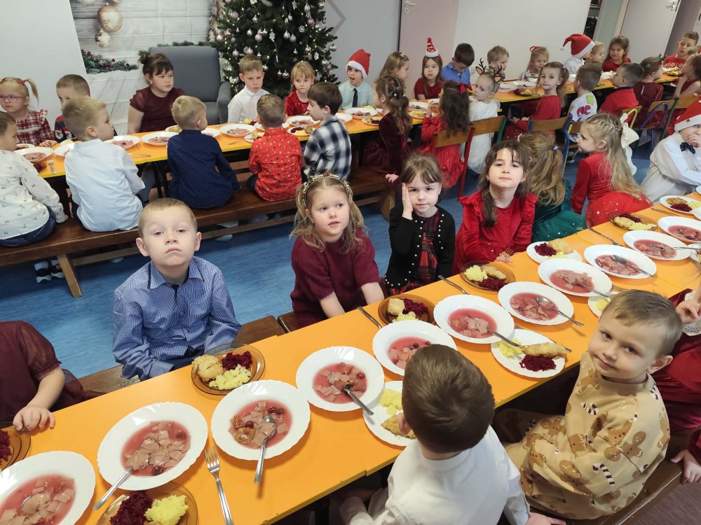 Dzieci odwdziÄ™czyÅ‚y siÄ™ piÄ™knymi Bożonarodzeniowymi piosenkami. A Wigilijny stóÅ‚ uginaÅ‚ siÄ™ od smacznych potraw.