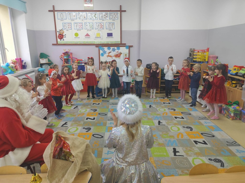 Przedszkolaki pewnie na długo zapamiętają te chwile spędzone z Mikołajem i Śnieżynką.