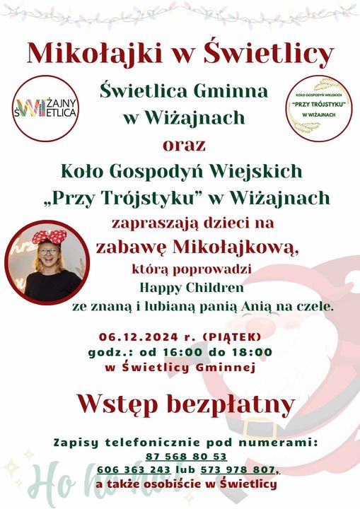 Świetlica Gminna w Wiżajnach i Koło Gospodyń Wiejskich „Przy Trójstyku” w Wiżajnach zapraszają 6 grudnia na Mikołajki.