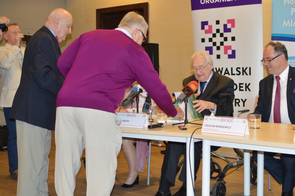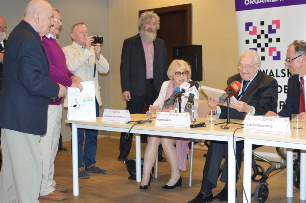 Znamienitego gościa powitał prezydent Suwałk Czesław Renkiewicz oraz dyrektor SOK-u Bożena Kamińska. Oboje podkreślali swoją radość z wizyty tak wybitnego suwalczanina. Andrzej Wajda urodził się 6 marca 1926 roku przy obecnej ulicy Wojska Polskiego. W Suwałkach, na terenie garnizonu, przebywał do ósmego roku życia. Później rodzina Wajdów przeniosła się do Radomia. Ze swojego dzieciństwa reżyser dokładnie pamięta wojskową musztrę (ojciec reżysera był wojskowym, został zamordowany w Katyniu).