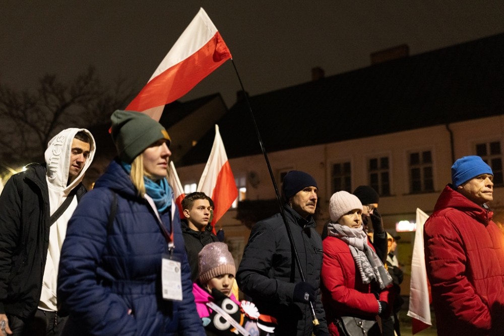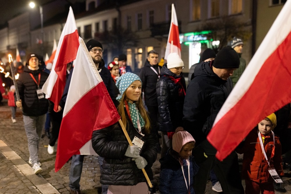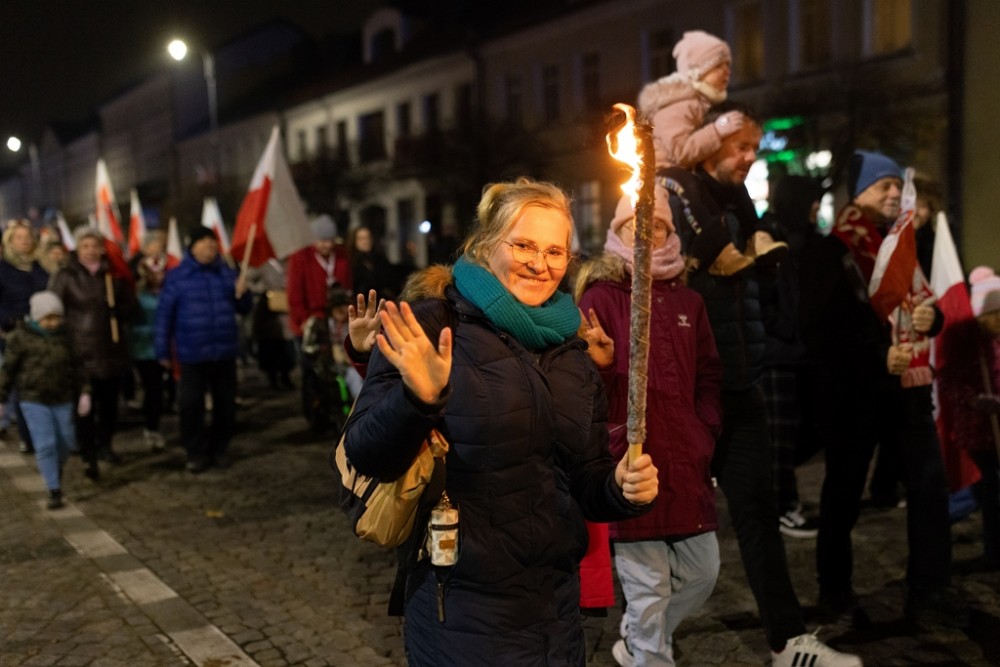 Młodzieżowy jest z nazwy i wieku organizatorów, ale uczestniczą w nim całe rodziny, dzieci i starsi. Tegoroczny wieczorny marsz 11 listopada w Suwałkach odbywał się pod hasłem „Żeby Polska była Polską”.