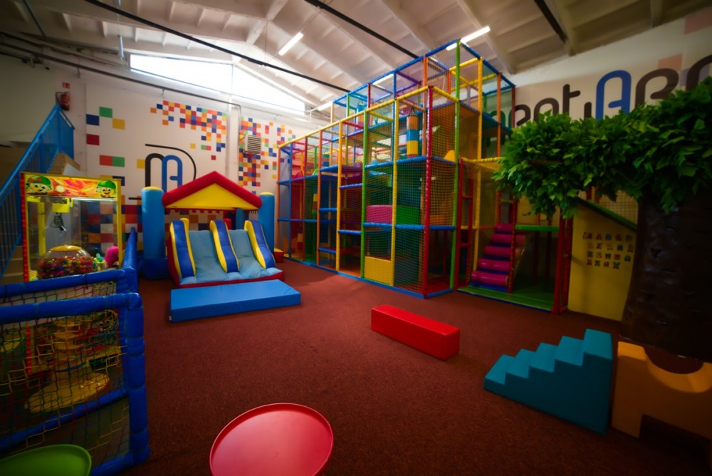 Magiczna kraina beztroskiej zabawy – kolorowy, czterokondygnacyjny plac zabaw przystosowany do najmłodszej grupy naszych gości – labirynt z przeszkodami, rozwijające kreatywność piankowe klocki, dmuchany zamek z miejscem do skakania i zjeżdżalnią oraz drzewo wspinaczkowe.