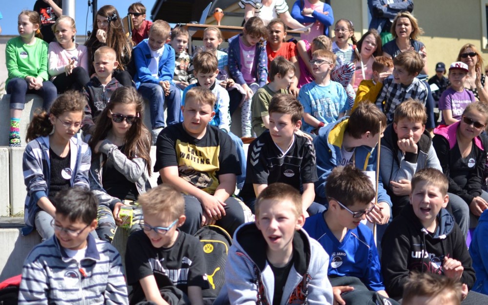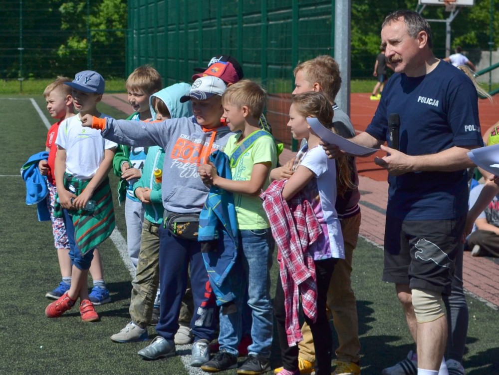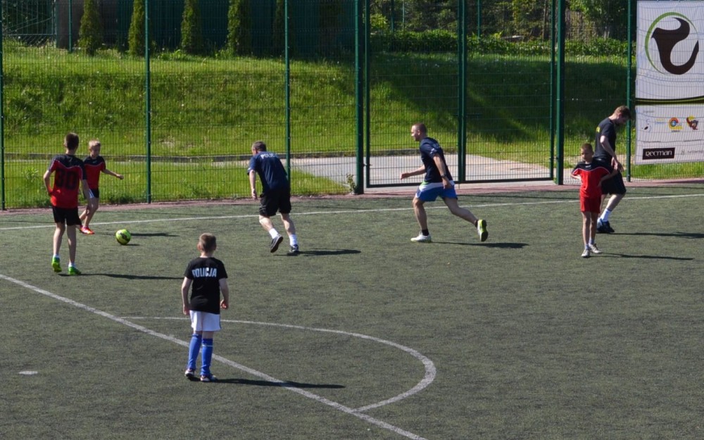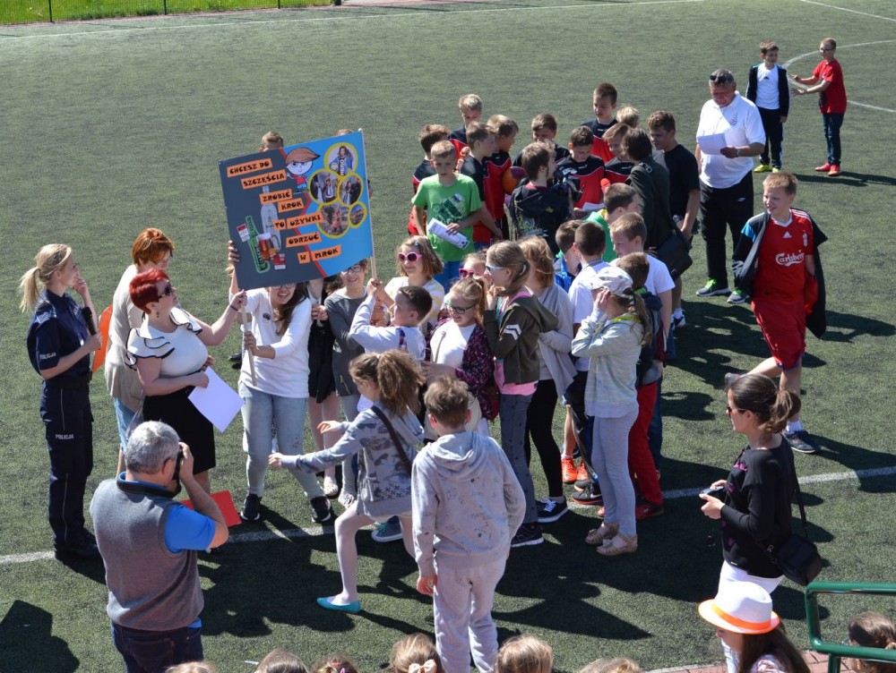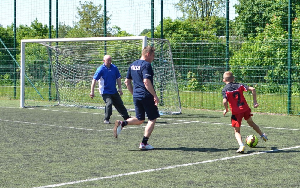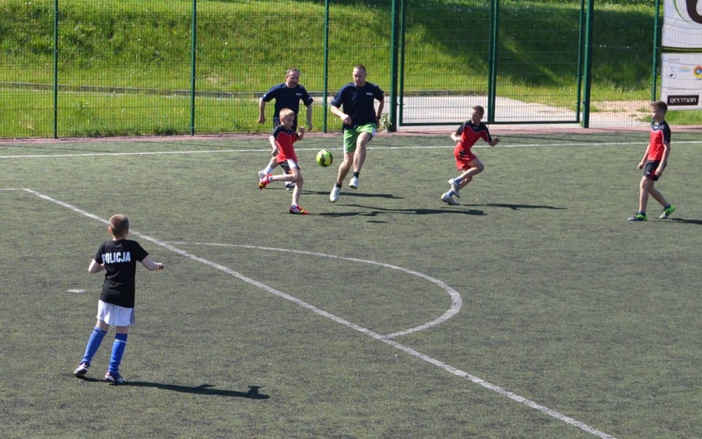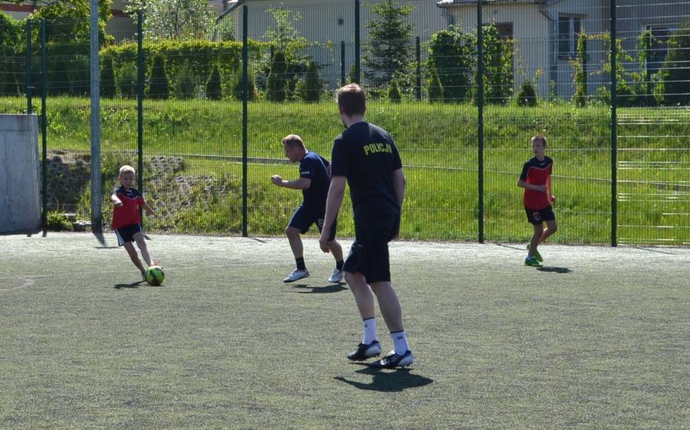 Mecz piłkarski uczniowie kontra policjanci związany był nie tylko z obchodami Dnia Dziecka. Obecni na przyszkolnym boisku społecznicy zorganizowali serię atrakcji, które miały uwrażliwić dzieci na problem przemocy i zagrożenia jakie niosą wszelkiego rodzaju używki.