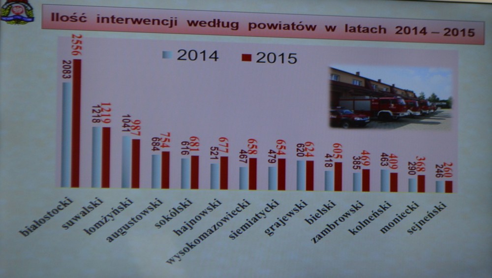 Komendant Siwicki podkreślił również dużą rolę znajdujących się na terenie powiatu 35 jednostek OSP. W ubiegłym roku najczęściej wyjeżdżali strażacy z OSP Suwałki, Filipów, Szypliszki i Raczki.