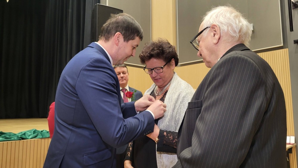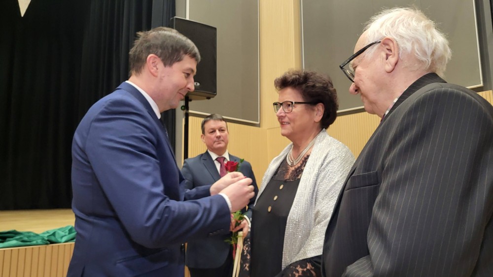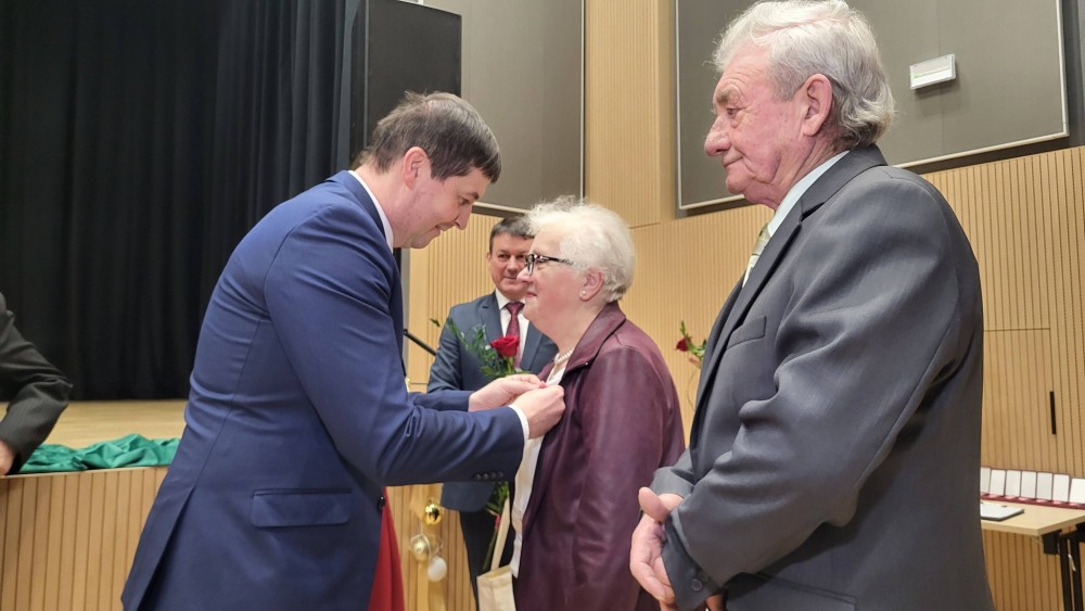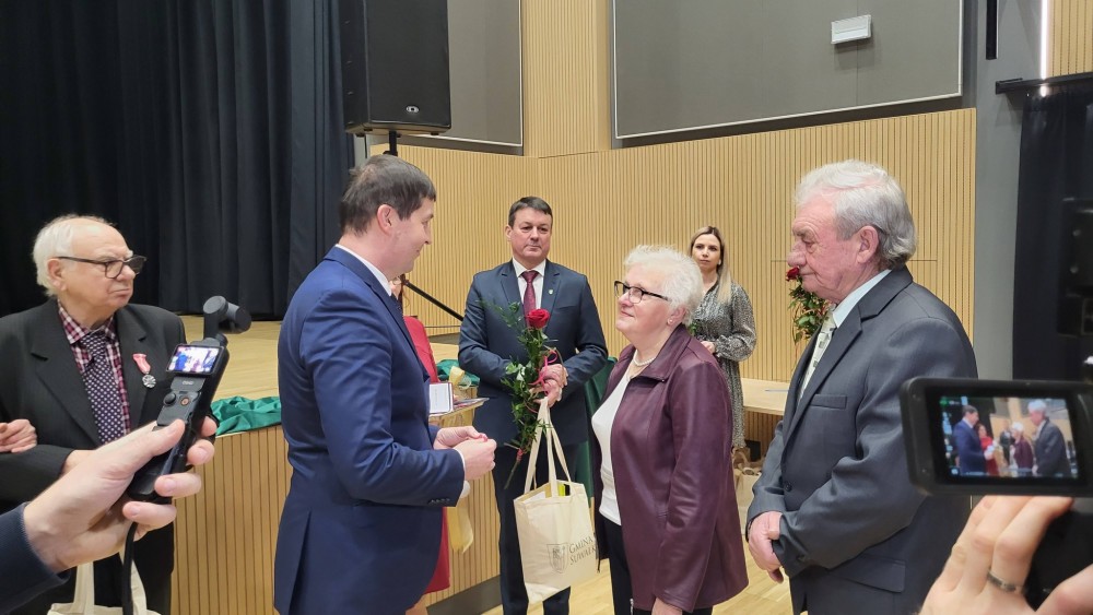 Odznaczenia i upominki wrÄ™czyli Jubilatom Krzysztof Andrzej Gwaj, zastÄ™pca wójta gminy SuwaÅ‚ki i Marek Jeromin, przewodniczÄ…cy Rady Gminy SuwaÅ‚ki.