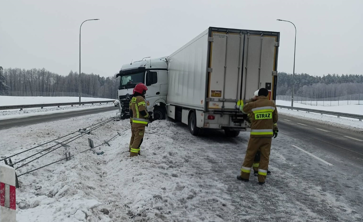 Około 9:00 rano na odcinku S61 Suwałki – Budzisko za węzłem Szypliszki, w kierunku Litwy, pojazd ciężarowy wjechał w pas rozdziału, uszkodził bariery drogowe i zablokował dwa lewe pasy ruchu w stronę Budziska i Suwałk.