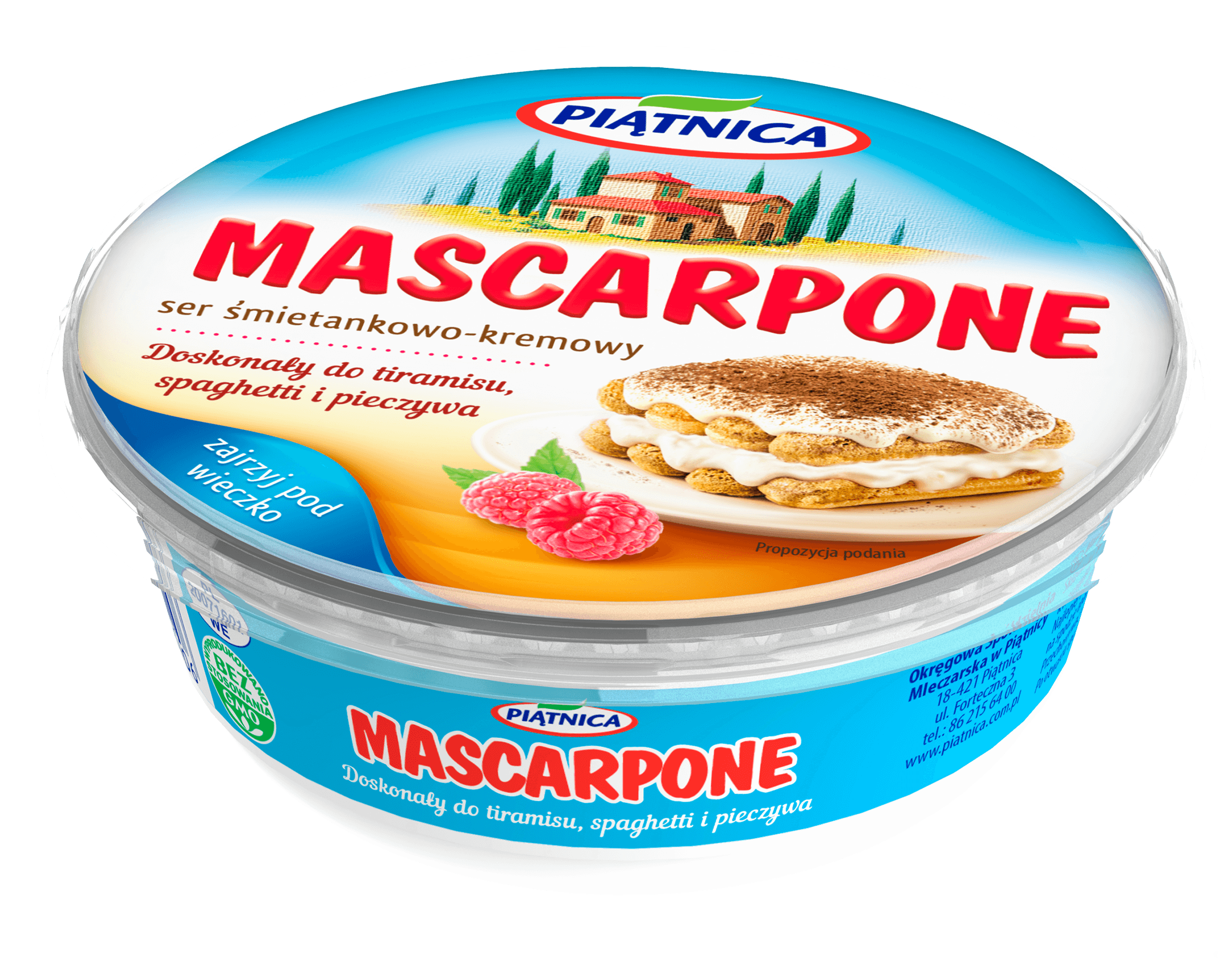 Ser Mascarpone z PiÄ…tnicy – to wyjÄ…tkowy rodzaj sera produkowany z najwyższej jakoÅ›ci pasteryzowanej Å›mietanki. Cechuje go gÅ‚adka, aksamitna konsystencja i Å›mietankowy smak. Stanowi doskonaÅ‚e połączenie najlepszych cech sera, masÅ‚a i Å›mietany. DodajÄ…c go do twarogu, uzyskasz wyjÄ…tkowo kremowy sernik o delikatnym smaku! Mascarpone z PiÄ…tnicy Å›wietnie wzbogaca także smak sosów do makaronu, daÅ„ miÄ™snych lub warzywnych.