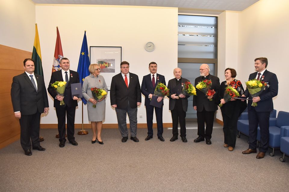 Minister Spraw Zagranicznych Republiki Litewskiej Linas Linkevičius wręczył medale honorowe dla przedstawicieli litewskiej diaspory na świecie za szczególne zasługi w pielęgnowaniu litewskości za granicami Litwy.