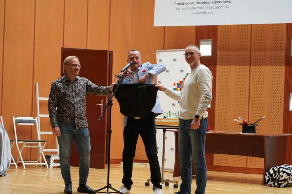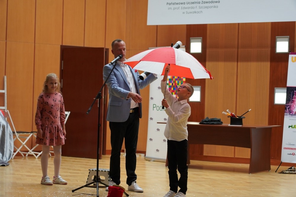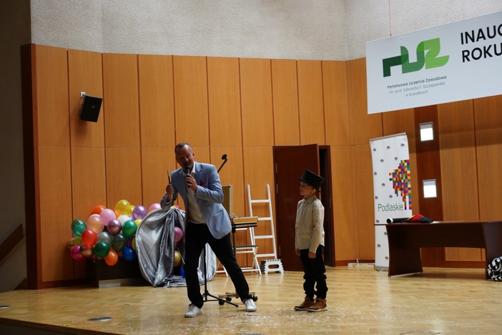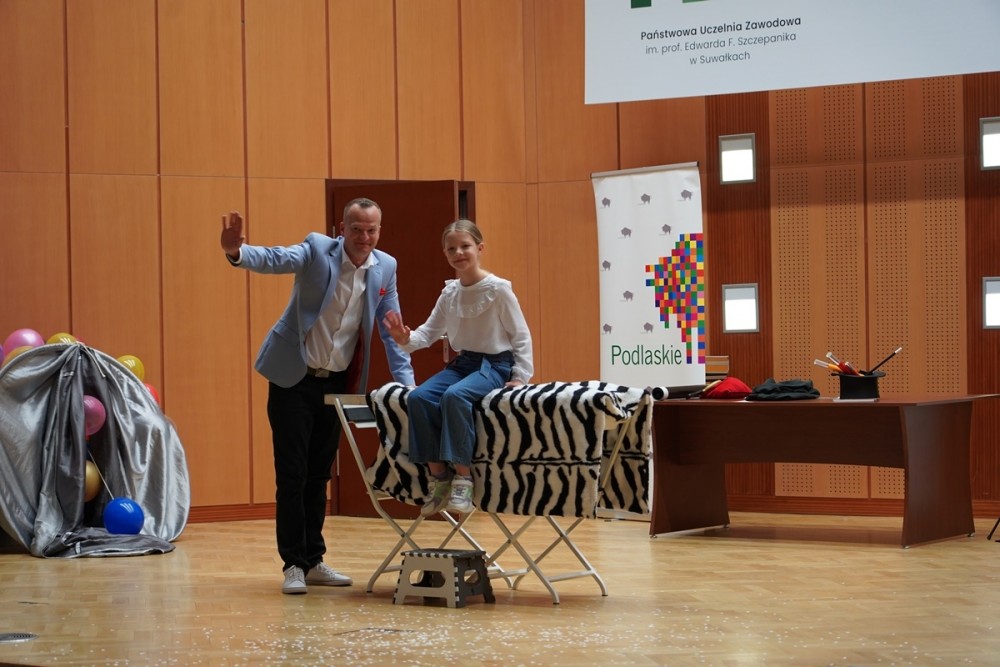 Na mÅ‚odych żaków czekaÅ‚a również niespodzianka– w Å›wiat magii zabraÅ‚ je iluzjonista Tomasz Sadowski.