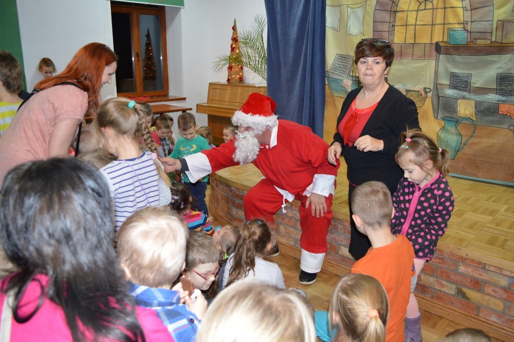 Przed przedstawieniem do GOK-u zawitaÅ‚ również ÅšwiÄ™ty MikoÅ‚aj. PrzedÅ›wiÄ…teczne spektakle dla dzieci w Raczkowskim GOK-u to już tradycja, dlatego widzów przybyÅ‚o tak dużo, że salka widowiskowa pÄ™kaÅ‚a w szwach. Najwidoczniej wszystkie dzieci byÅ‚y bardzo grzeczne, bo MikoÅ‚aj nikogo nie pominÄ…Å‚ i każdy maÅ‚y uczestnik otrzymaÅ‚ sÅ‚odki upominek.