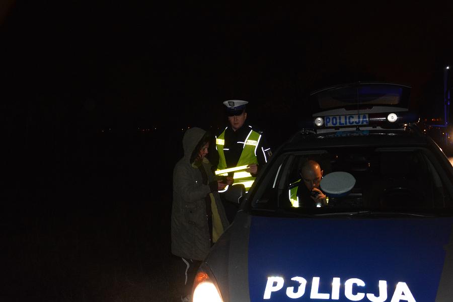 Suwalscy policjanci przeprowadzili kolejne działania propagujące noszenie elementów odblaskowych. Po zmroku wyruszyli na drogi powiatu, by ostrzegać i namawiać pieszych do dbania o własne bezpieczeństwo.