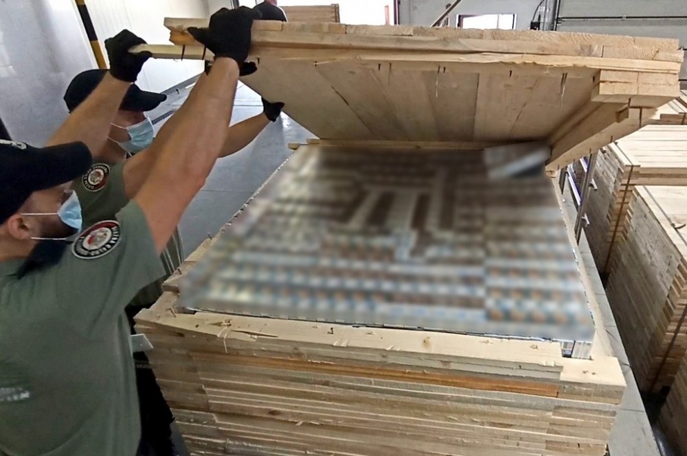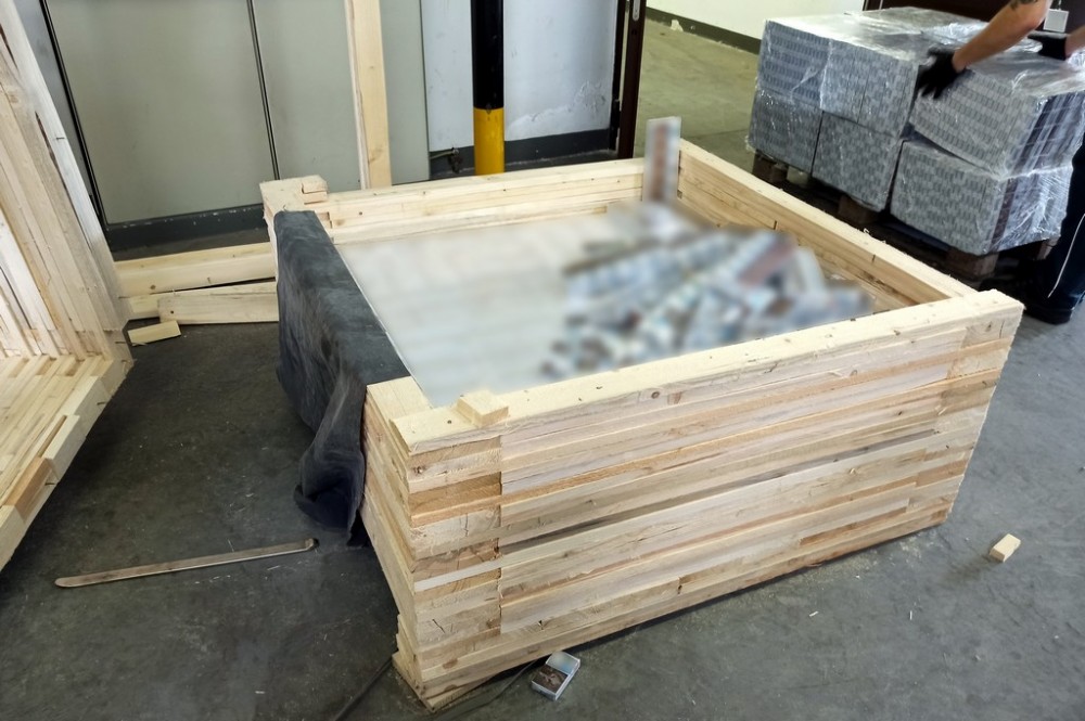 Funkcjonariusze KAS z polsko-biaÅ‚oruskiego przejÅ›cia granicznego w Kuźnicy skontrolowali tira, który zgodnie z dokumentami miaÅ‚ przewozić deski. W trakcie szczegóÅ‚owego sprawdzania ciężarówki poprzedzonego przeÅ›wietleniem rentgenowskim okazaÅ‚o siÄ™, że w naczepie, w specjalnie przygotowanych skrzyniach imitujÄ…cych palety z deskami, ukryta jest papierosowa kontrabanda.