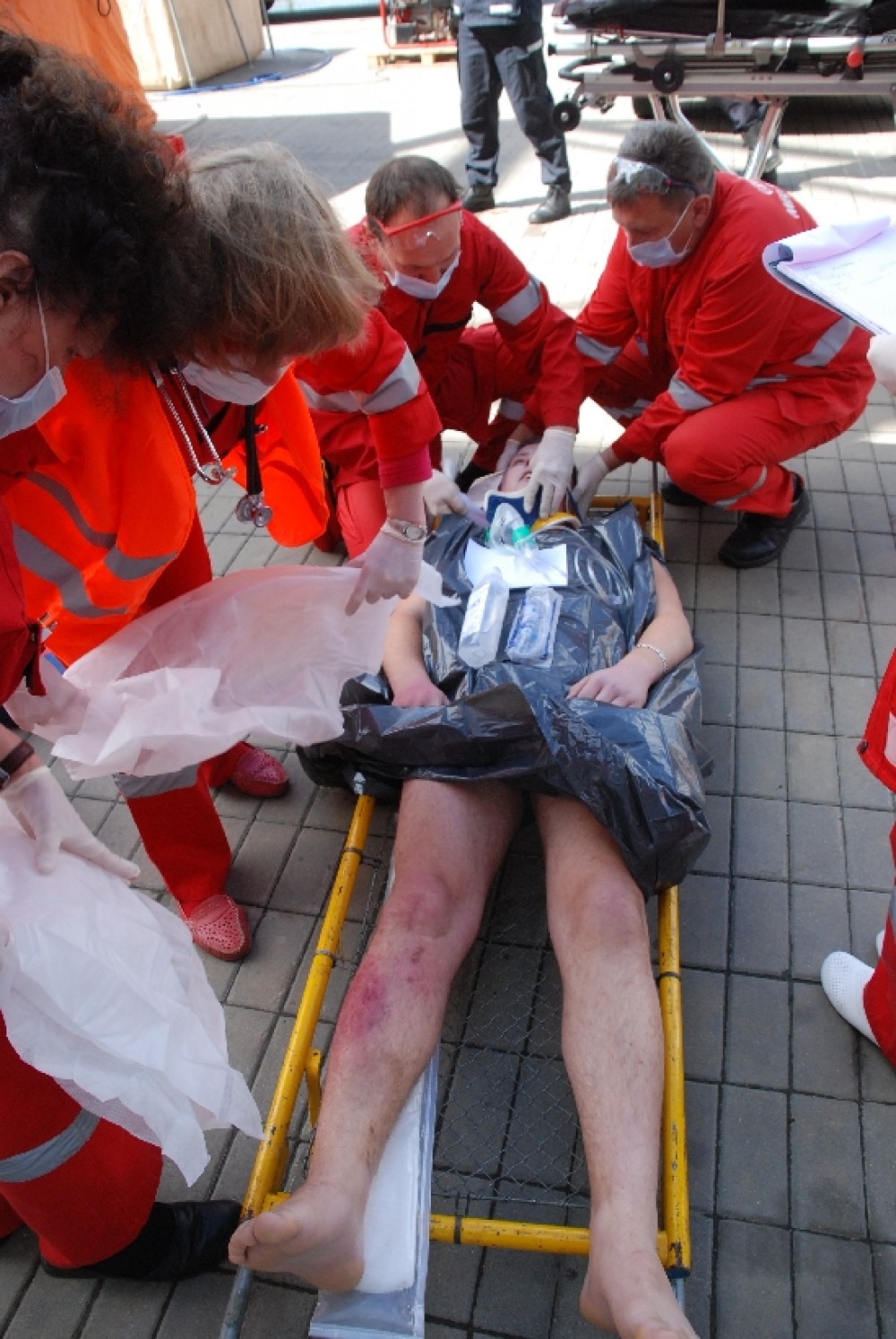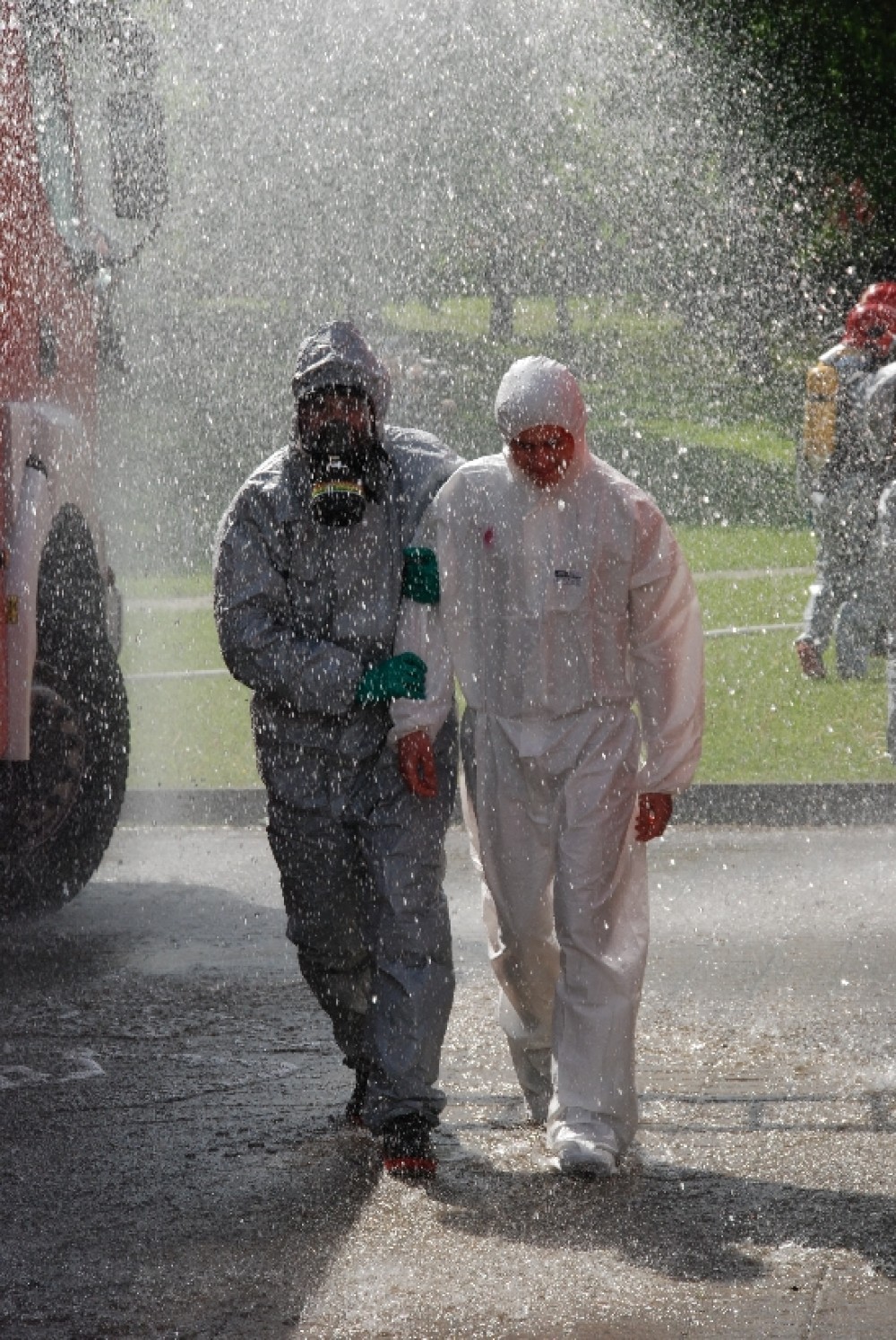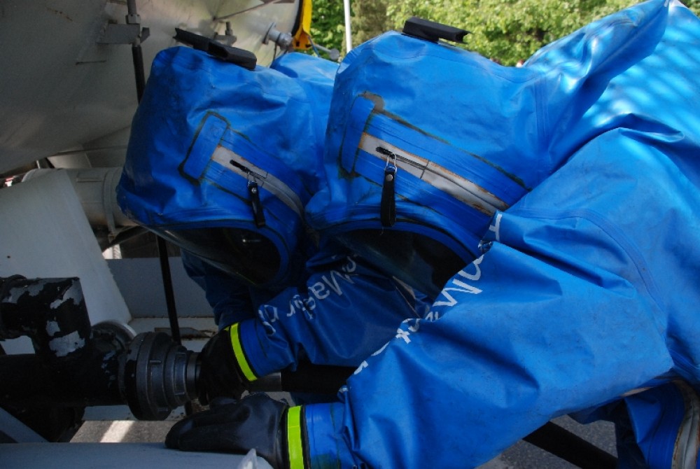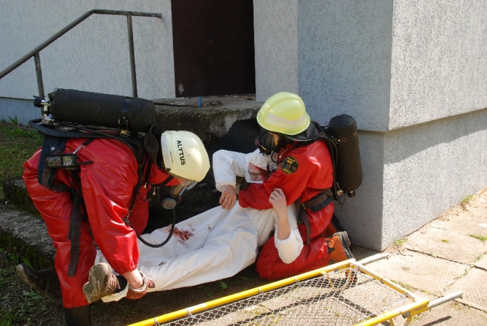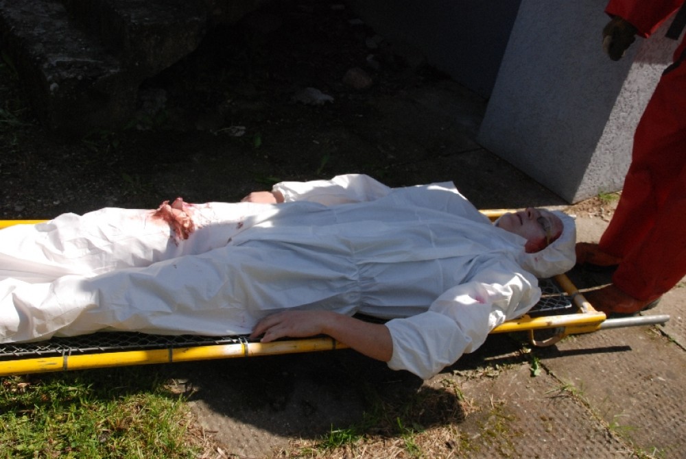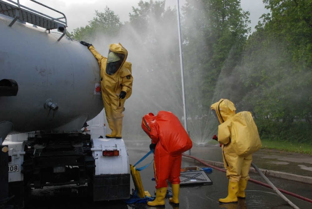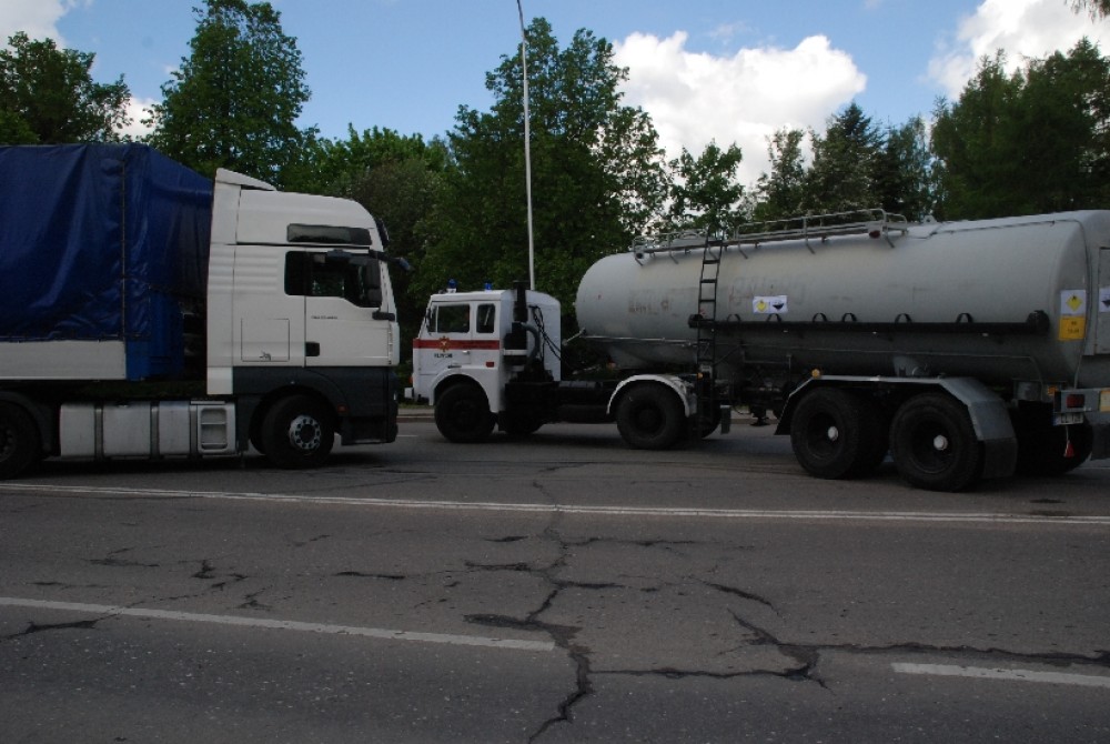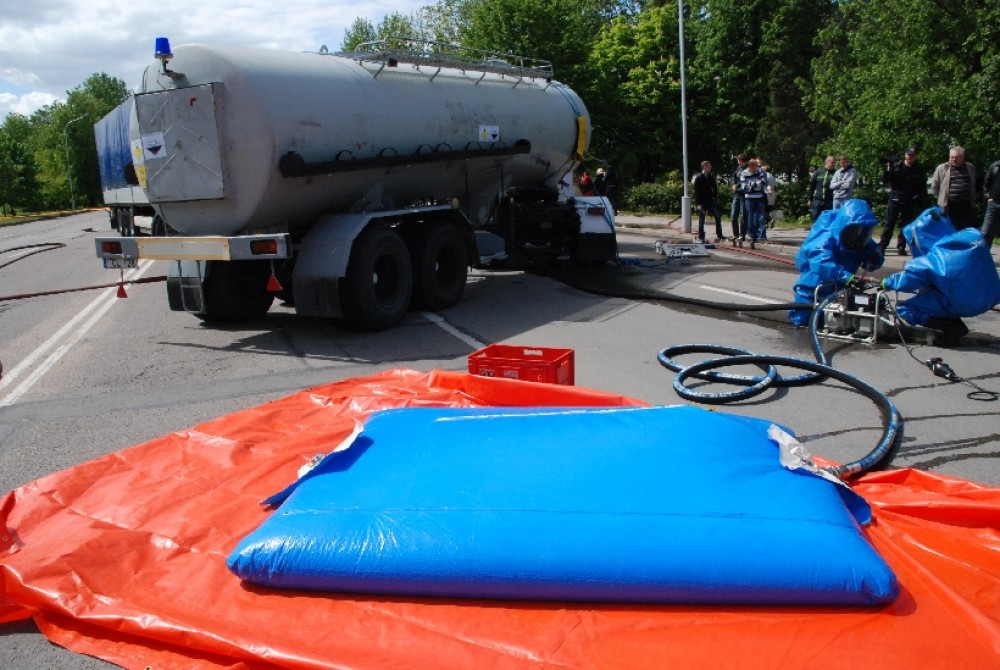 - W wyniku panujÄ…cych warunków drogowych dochodzÅ‚o do zderzenia samochodu ciężarowego, przewożącego meble, z cysternÄ…, w której znajdowaÅ‚ siÄ™ stężony nadtlenek wodoru – zaÅ‚ożenia ćwiczeÅ„ przedstawia st. kpt. Marcin Janowski, rzecznik prasowy KW PSP w BiaÅ‚ymstoku. - Obaj kierowcy zostali uwiÄ™zieni w pojazdach i byli nieprzytomni. Dodatkowo w ciężarówce doszÅ‚o do pożaru, którego objÄ…Å‚ też przewożony Å‚adunek. Z uszkodzeniem pÅ‚aszcza cysterny na drogÄ™ zaczęła wyciekać niebezpieczna substancja, której opary zagrażaÅ‚y Centrum Sportowemu.