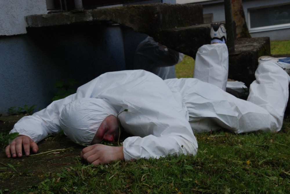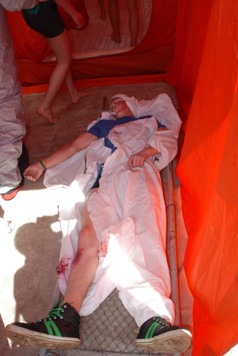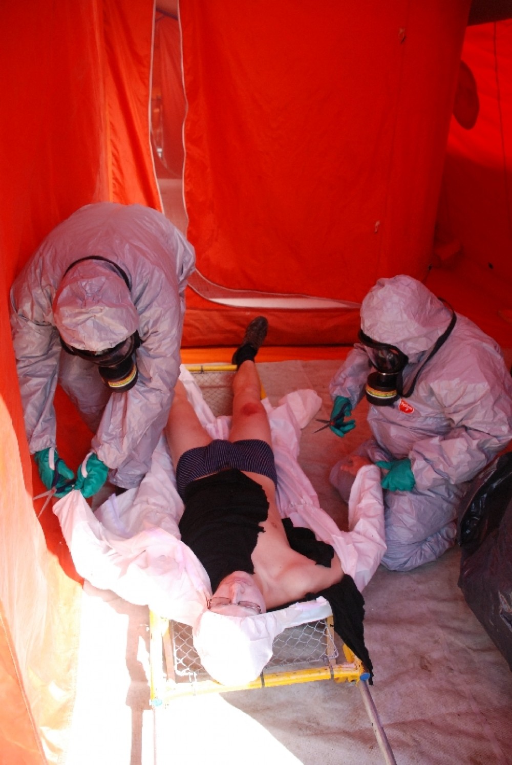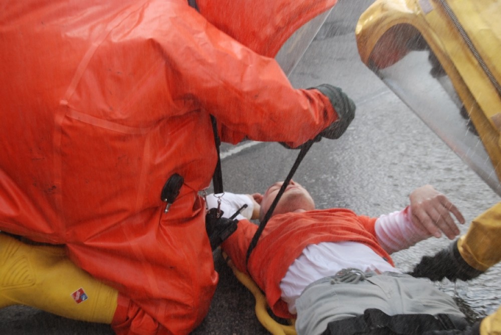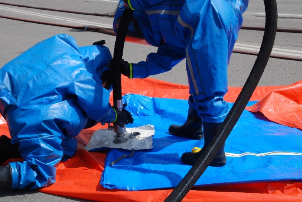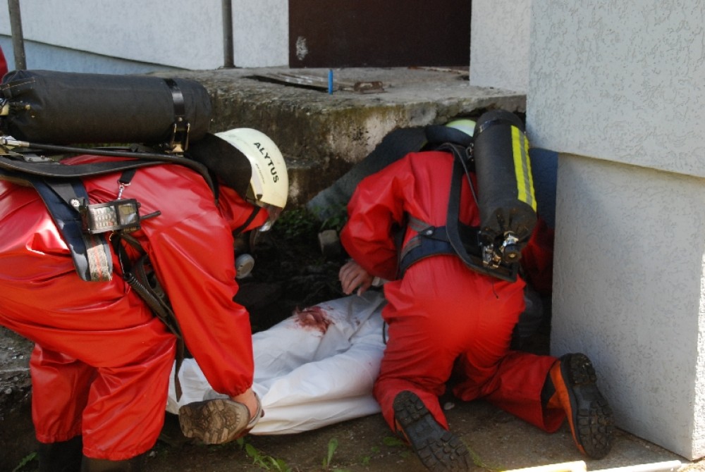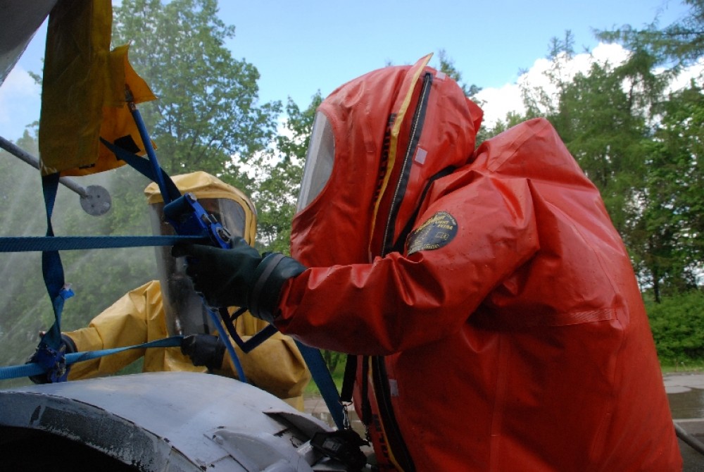 - W wyniku panujÄ…cych warunków drogowych dochodzÅ‚o do zderzenia samochodu ciężarowego, przewożącego meble, z cysternÄ…, w której znajdowaÅ‚ siÄ™ stężony nadtlenek wodoru – zaÅ‚ożenia ćwiczeÅ„ przedstawia st. kpt. Marcin Janowski, rzecznik prasowy KW PSP w BiaÅ‚ymstoku. - Obaj kierowcy zostali uwiÄ™zieni w pojazdach i byli nieprzytomni. Dodatkowo w ciężarówce doszÅ‚o do pożaru, którego objÄ…Å‚ też przewożony Å‚adunek. Z uszkodzeniem pÅ‚aszcza cysterny na drogÄ™ zaczęła wyciekać niebezpieczna substancja, której opary zagrażaÅ‚y Centrum Sportowemu.