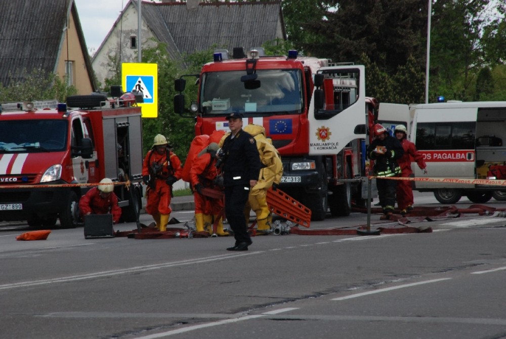 Z udziałem strażaków z Suwałk, Augustowa, Sejn i Białegostoku w litewskim Mariampolu odbyły się dziś litewsko-polskie, ćwiczenia strażaków z zakresu ratownictwa chemicznego i dekontaminacji masowej. W tej drugiej części udział brała też młodzież z jednej z mariampolskich szkół.