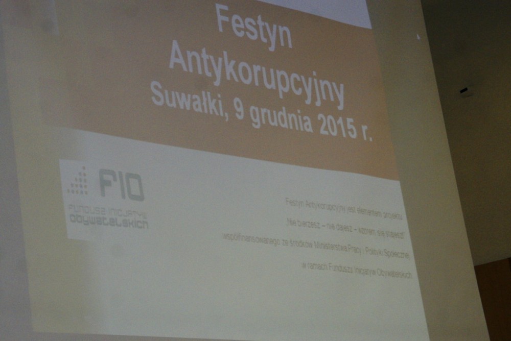 Centrum Aktywności Społecznej PRYZMAT zorganizowało w środę w Państwowej Wyższej Szkole Zawodowej w Suwałkach Festyn Antykorupcyjny pt. „Nie bierzesz – nie dajesz – wzorem się stajesz!”. W spotkaniu uczestniczyło 265 osób. Festyn był jednym z elementów projektu pod taką nazwą, który jest realizowany przez stowarzyszenie.