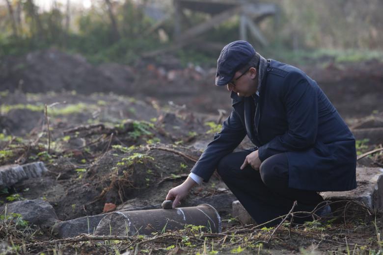Na fot. Adam Bodnar na dawnym cmentarzy żydowskim w Maszewie