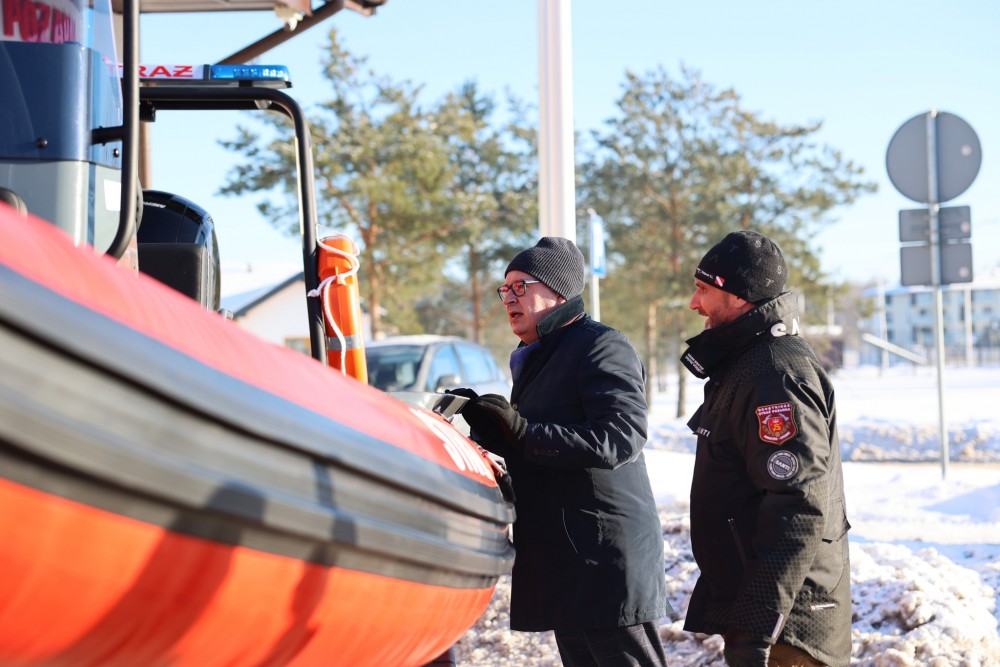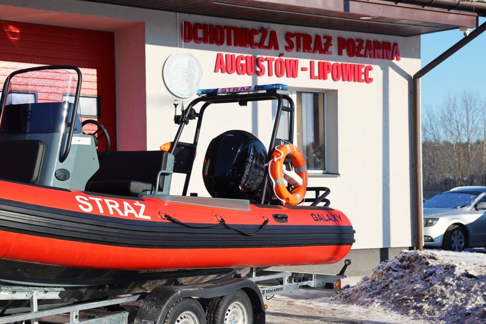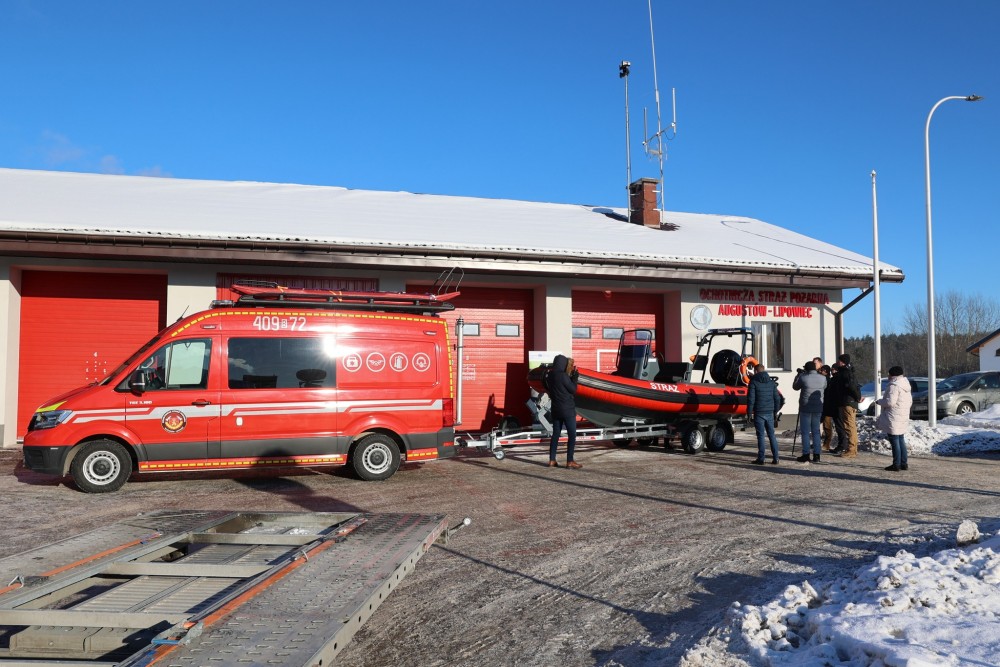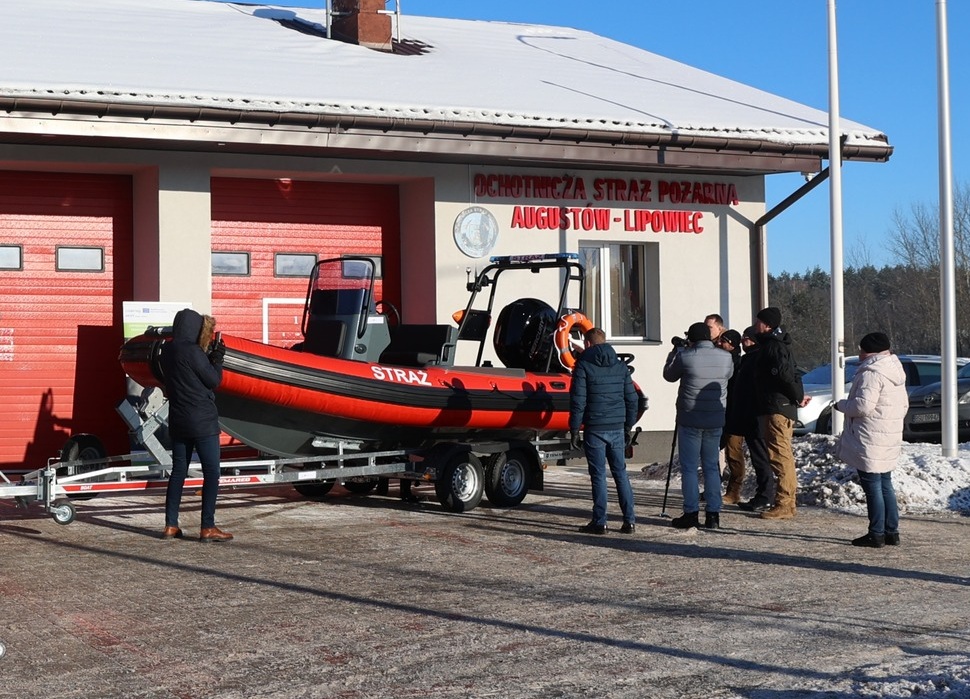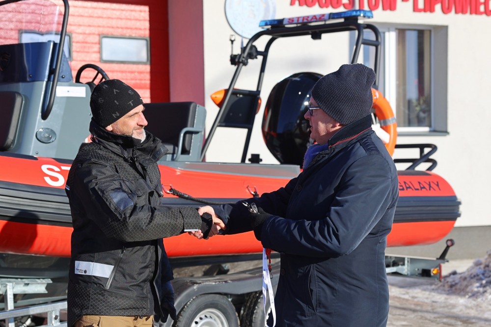 Burmistrz Mirosław Karolczuk przekazał w poniedziałek, 2 lutego druhom z OSP Augustów-Lipowiec kluczyki do nowoczesnej łodzi typu RIB.