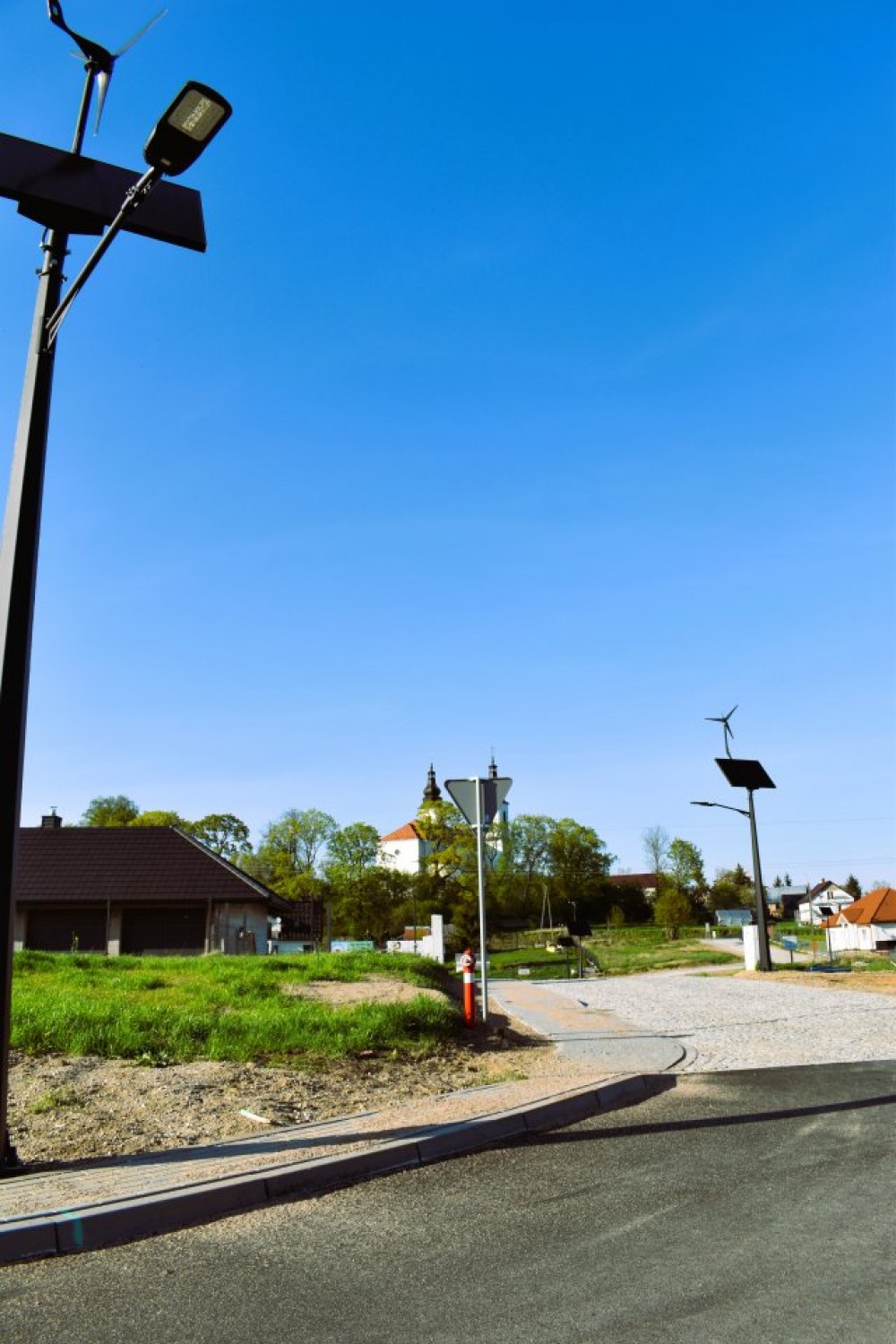 Zadanie: "Wykorzystanie odnawialnych źródeł energii słonecznej i wiatrowej do oświetlenia ciągów komunikacyjnych Bakałarzewa" wykonała firma Petra Energia Sp. z o. o.
