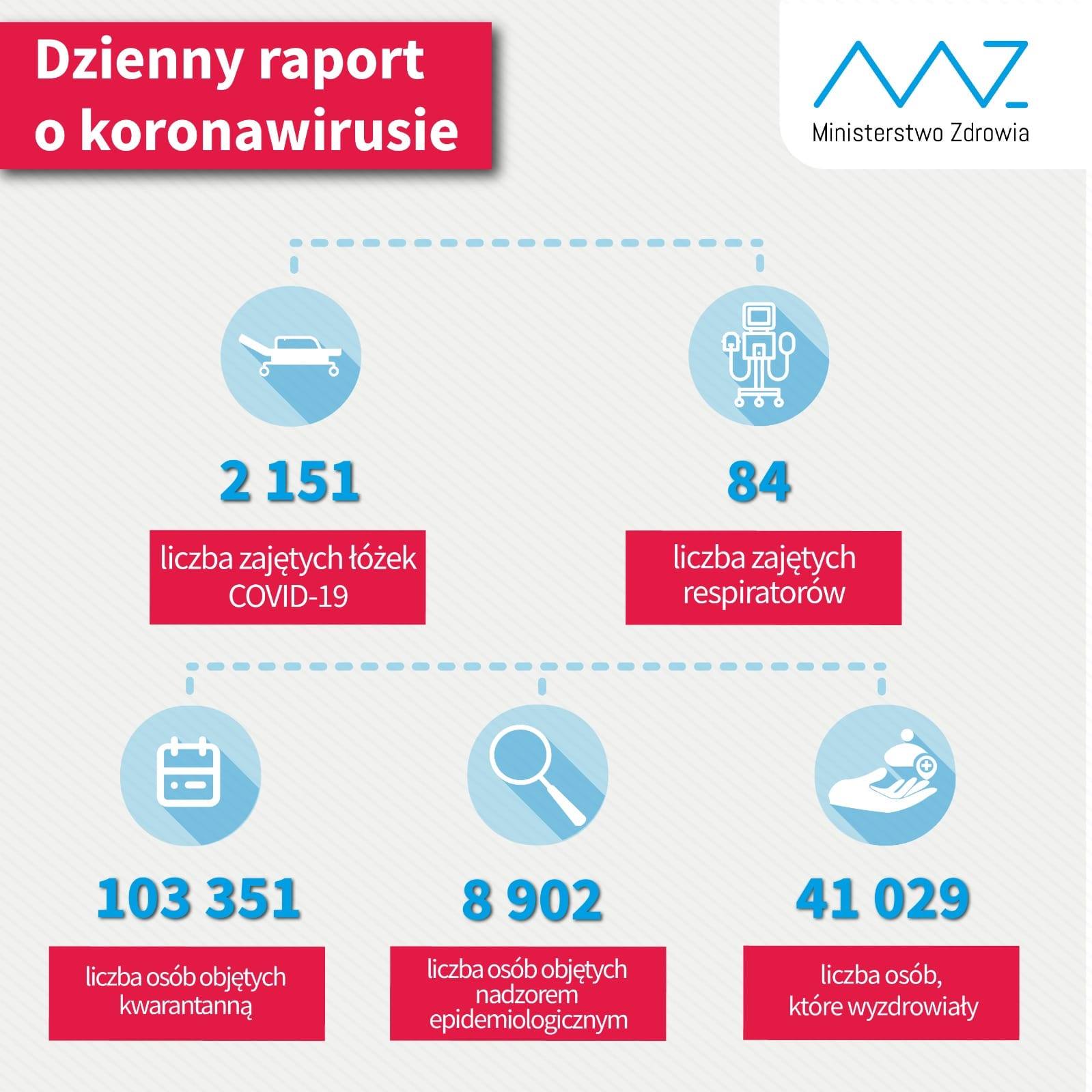 Ministerstwo Zdrowia poinformowało o 903 przypadkach zakażeń, głównie z województw śląskiego, małopolskiego i mazowieckiego.
