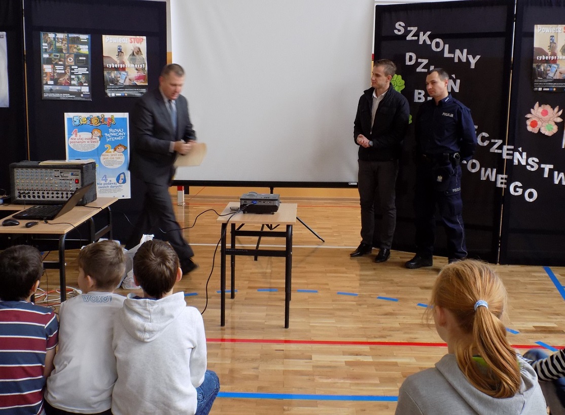 Dzielnicowy z Posterunku Policji w Filipowie spotkaÅ‚ siÄ™ z uczniami oraz nauczycielami w Szkole Podstawowej w PrzeroÅ›li. Podczas spotkania przypomniano najmÅ‚odszym czym jest cyberprzemoc, jak siÄ™ przed niÄ… bronić oraz jakie sÄ… konsekwencje dla jej sprawców. Rozmawiano z uczniami o tym, że Internet zapewnia wspaniaÅ‚e możliwoÅ›ci do nauki i zabaw. PodkreÅ›lano, że warto pamiÄ™tać o zagrożeniach, jakie sÄ… z nim zwiÄ…zane. Przedstawiono takie zagrożenia jak: cyberprzemoc, niebezpieczne kontakty, szkodliwe treÅ›ci, zagrożenie prywatnoÅ›ci, przestÄ™pstwa internetowe oraz problem uzależnienia od Internetu. Przekazano uczniom, że każdy indywidualnie ponosi odpowiedzialność za to, co robi w sieci i w jaki sposób z niej korzysta. Policjant mówiÅ‚ również o odpowiedzialnoÅ›ci prawnej za swoje zachowanie zarówno w Å›wiecie realnym, jak i wirtualnym. Poza tym spotkanie byÅ‚o doskonałą okazjÄ…, aby uÅ›wiadomić mÅ‚odym ludziom, jak istotnÄ… rolÄ™ w ich życiu ma przyjmowanie wÅ‚aÅ›ciwych postaw i podejmowanie odpowiednich decyzji.