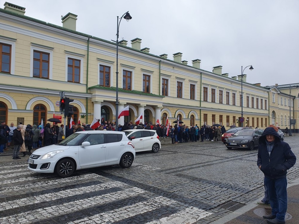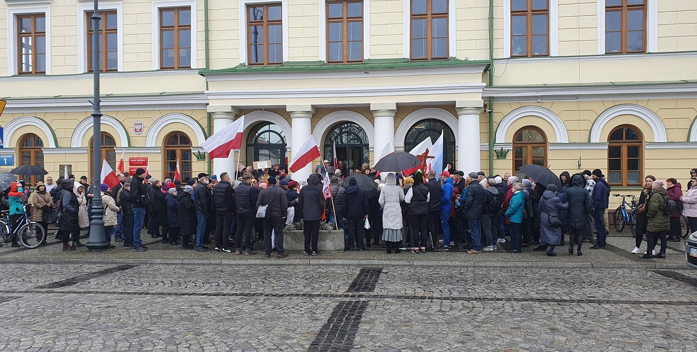 Głos zabrał jeszcze Marcin Marczak, przedstawiciel grupy Suwalszczyzna Na Warcie, organizator przybycia mieszkańców na sesję i zgromadzenia pod Urzędem Miejskim.