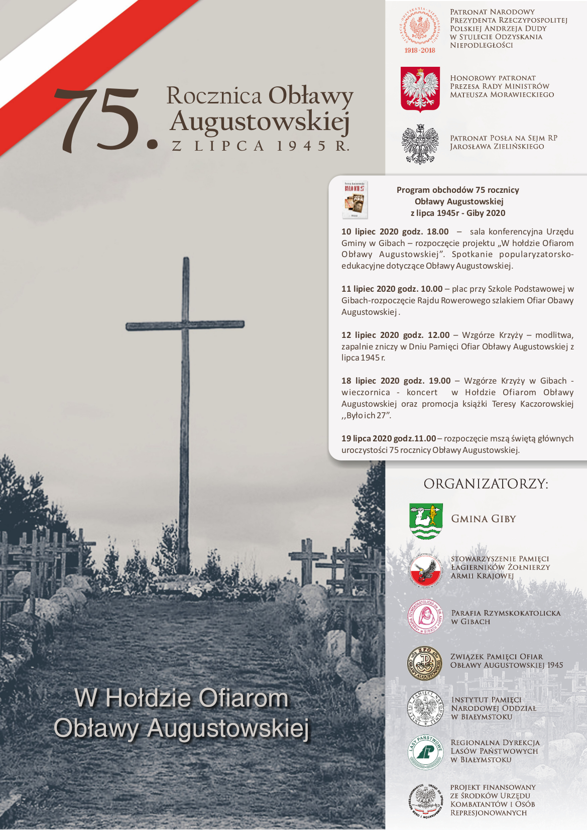 Instytut Pamięci Narodowej zachęca do udziału w uroczystościach upamiętniających ofiary Obławy Augustowskiej – niewyjaśnionej dotąd zbrodni dokonanej przez Sowietów na mieszkańcach północno-wschodniej Polski. Obchody 75. rocznicy odbędą się w dniach 10 – 19 lipca w Gibach.