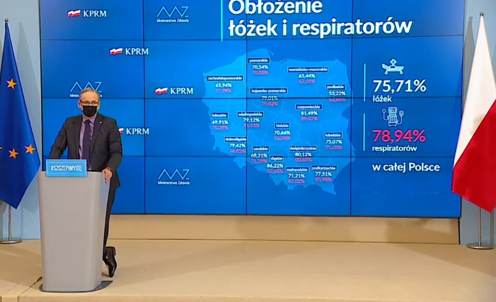 Minister zdrowia dodaÅ‚, że kolejne decyzje bedÄ… zdetrminowane obÅ‚ożeniem infrastruktury szpitalnej, zwlaszcza respiratorów.