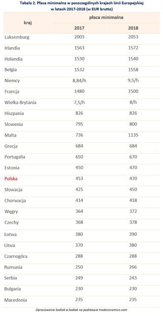 W 2018 r. minimalne wynagrodzenie za pracę wynosiło 2100 złotych, a minimalna stawka godzinowa 13,70 zł.