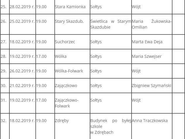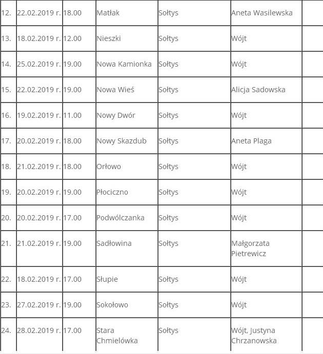 Terminy zebrań wiejskich wyborczych :