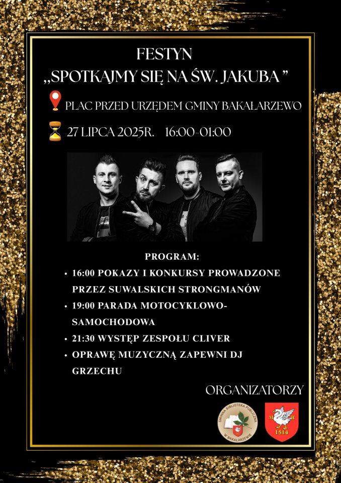 - Serdecznie zapraszamy 27 lipca 2025 roku na jednÄ… z najstarszych w regionie, już XI ParadÄ™ motocyklowo-samochodowÄ… w BakaÅ‚arzewie. Tradycyjnie wyjazd o godz. 17:00 spod nowego bloku przy ul. Króla Zygmunta Starego 3 w BakaÅ‚arzewie: przejazd ulicami BakaÅ‚arzewa, Stary Skazdub, Nowy Skazdub, Suchorzec, Góra, ZdrÄ™by, SÅ‚upie, SokoÅ‚owo, Maryna, Klonowa Góra, Kamionka Poprzeczna, Stara Kamionka, Malinówka, BakaÅ‚arzewo ul. Suwalska, Krzywa, Pogodna, SÅ‚oneczna, Polna, Kotowina, Karasiewo, Konopki, GÄ™balówka, SadÅ‚owina, Nowa WieÅ›, BakaÅ‚arzewo. O godz. 19:00 paradny wjazd na Rynek. Później odbÄ™dÄ… siÄ™ koncerty taneczne na rynku przy UrzÄ™dzie Gminy – informuje Tomasz Naruszewicz, Wójt Gminy BakaÅ‚arzewo.