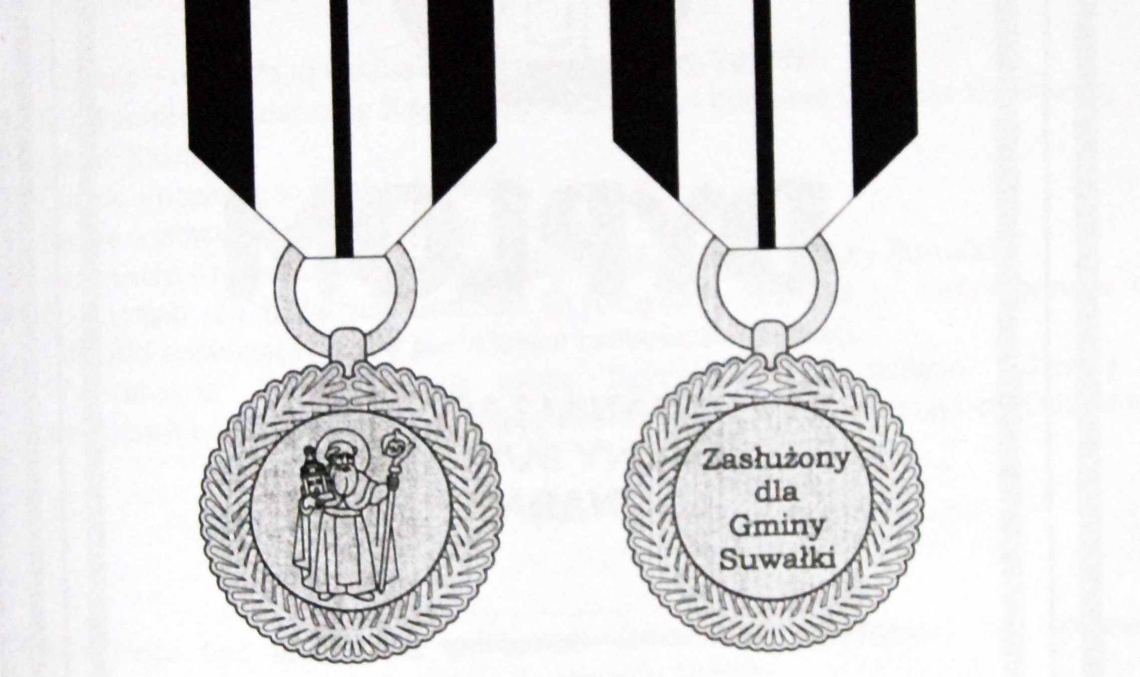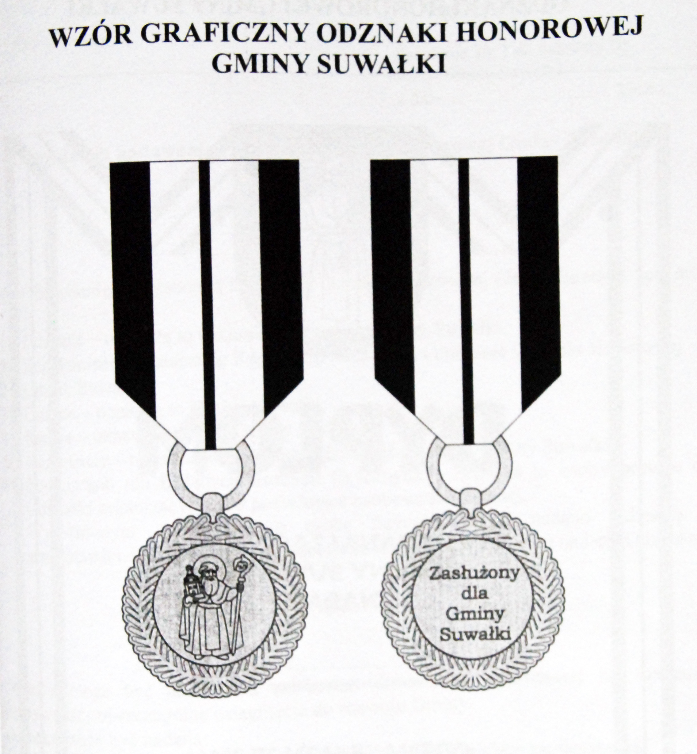 Jak czytamy w uchwale Rady Gminy: odznaką będzie „medal o średnicy 38 mm, z krawędzią obustronnie ornamentowaną na wzór wieńca ze świerczyny, na stronie licowej wypukły wizerunek godła z herbu Gminy, a na stronie odwrotnej napis ”Zasłużony dla Gminy Suwałki”.