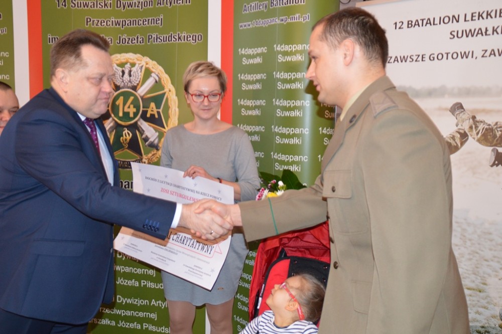 Barbarze i Marcinowi Szturgulewskim czek wrÄ™czyli suwalski poseÅ‚ PiS, wiceminister spraw wewnÄ™trznych JarosÅ‚aw ZieliÅ„ski, inicjator balu oraz dowódca 14 Dywizjonu Artylerii Przeciwpancernej podpuÅ‚kownik Krzysztof Åšwiderski, który zorganizowaÅ‚ zabawÄ™ wespóÅ‚ z JarosÅ‚awem Kowalewskim, szefem WKU i Piotrem SulwiÅ„skim, dowódcÄ… 12 batalionu lekkiej piechoty (WOT).