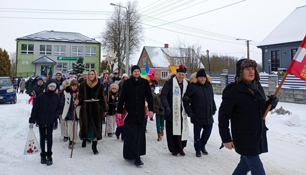 Orkiestra Dęta OSP Sejny uświetniła Mszę Świętą, nadając jej uroczysty charakter. Podczas orszaku towarzyszył licznym uczestnikom śpiew kolęd prowadzony przez chór parafialny .