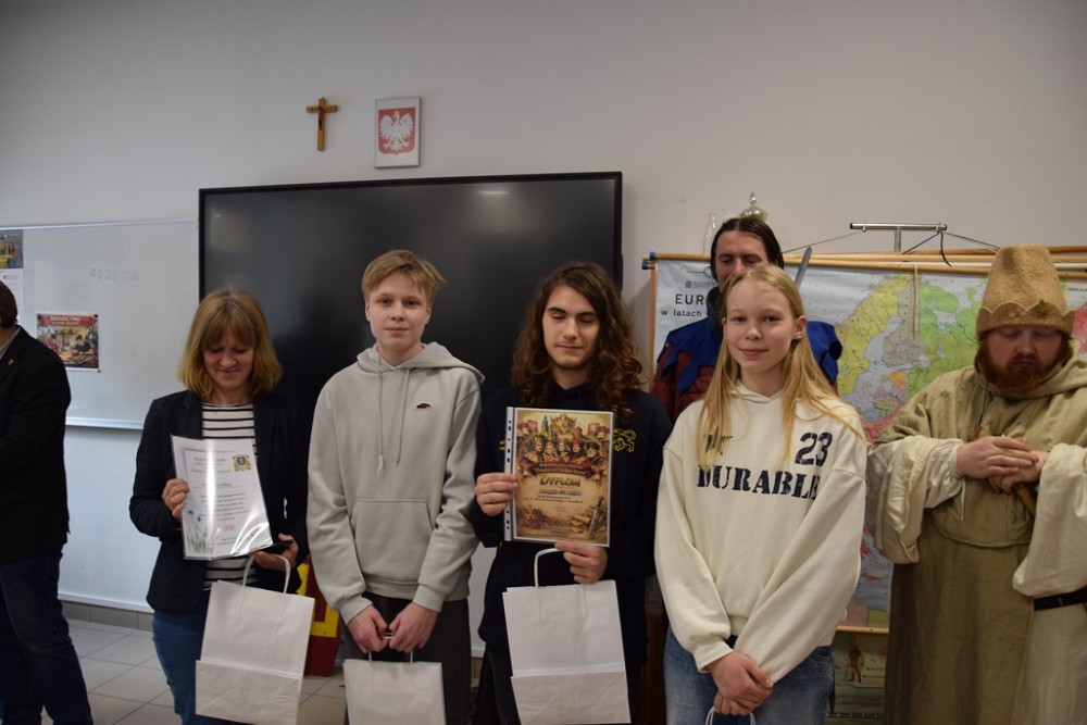 Do rywalizacji stanęło osiem drużyn, które przez cały dzień przemierzały kolejne stacje rozmieszczone w przestrzeni szkoły. Chwilę trzeba było analizować teksty źródłowe i rozpoznawać postacie z epoki Jagiellonów, chwilę później – sięgać po matematykę, by rozszyfrować zakodowaną wiadomość. Jedna z najtrudniejszych konkurencji – szyfr jagielloński – wymagała bowiem znajomości nie tylko historii, ale i podstaw arytmetyki: kluczem do odczytania tajnej wiadomości był rok słynnej bitwy, w której Polacy i Litwini pokonali Krzyżaków.