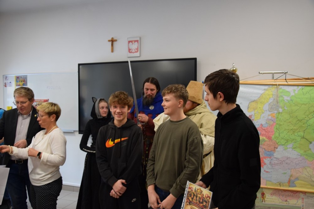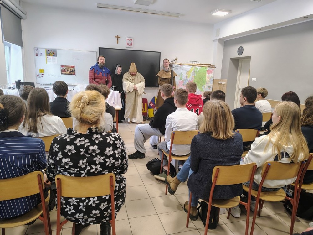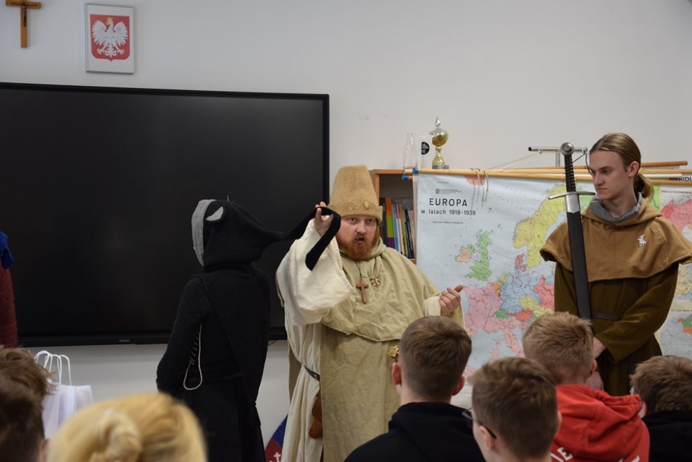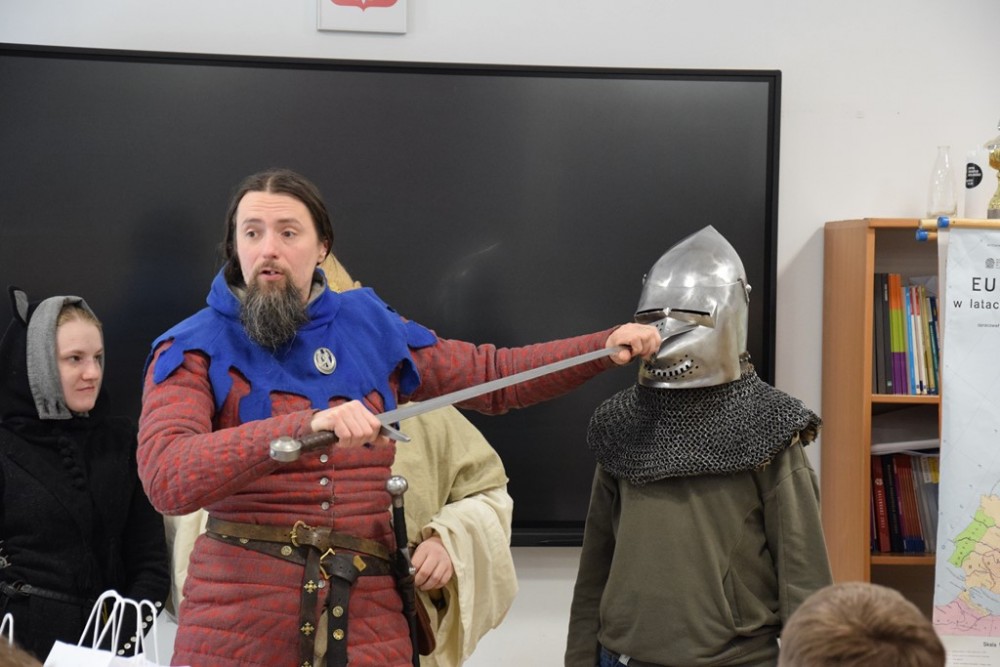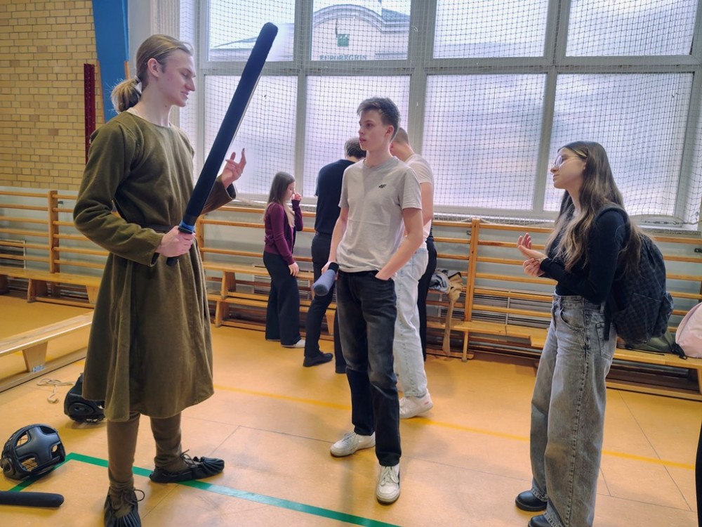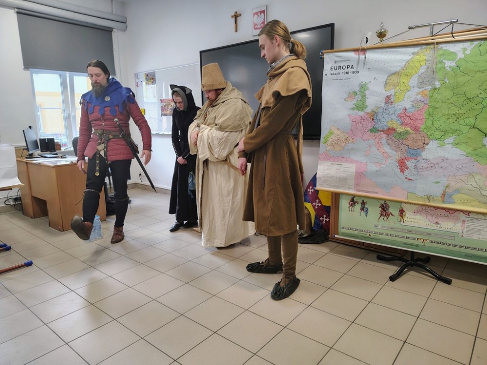 Zwieńczeniem dnia był pokaz Fundacji Żywej Historii Hanza – rekonstruktorów średniowiecznej Europy. Uczniowie zobaczyli inscenizację bitwy pod Grunwaldem w strojach z epoki Jagiellonów, mogli poczuć ciężar zbroi i dotknąć autentycznych rekwizytów. Dla wielu to właśnie ten moment okazał się największym przeżyciem całego dnia.