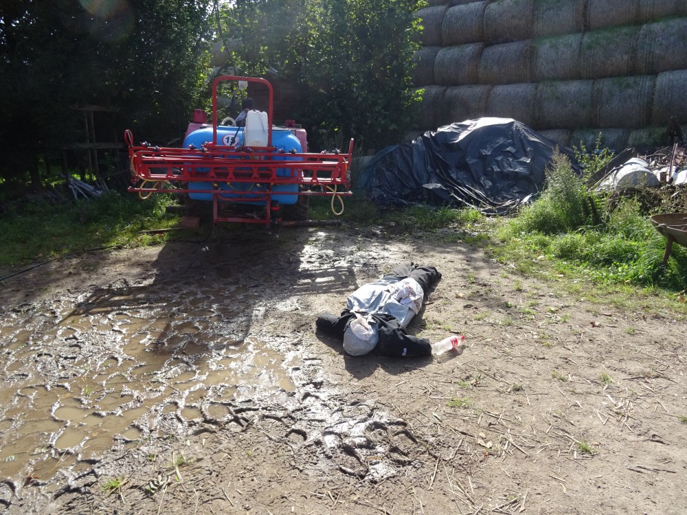 Gospodarstwo – upadek z ciÄ…gnika podczas prac i rozlanie substancji chemicznej.