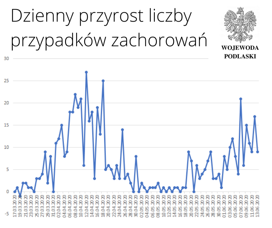 Wojewoda Podlaski i Podlaski Państwowy Wojewódzki Inspektor Sanitarny informują o dwudziestu trzech kolejnych przypadkach zakażenia koronawirusem w regionie, potwierdzonych pozytywnymi wynikami testów laboratoryjnych. To: