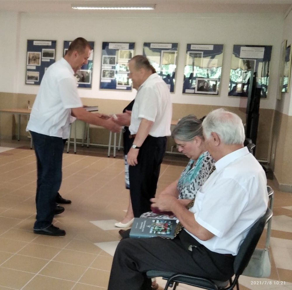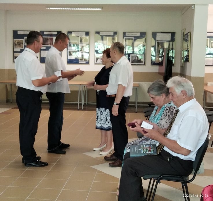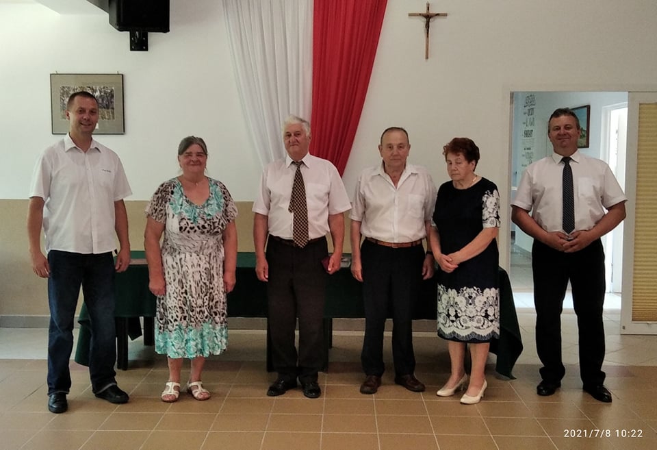 Na uroczystoÅ›ci do Biblioteki przybyÅ‚y dwie pary: Teresa i StanisÅ‚aw Sówkowie oraz Helena i Edward Wasilewscy z BakaÅ‚arzewa. WczeÅ›niej w domu urzednicy odwiedzili JadwigÄ™ i Romualda Dwojakowskich ze Starego Skazduba.