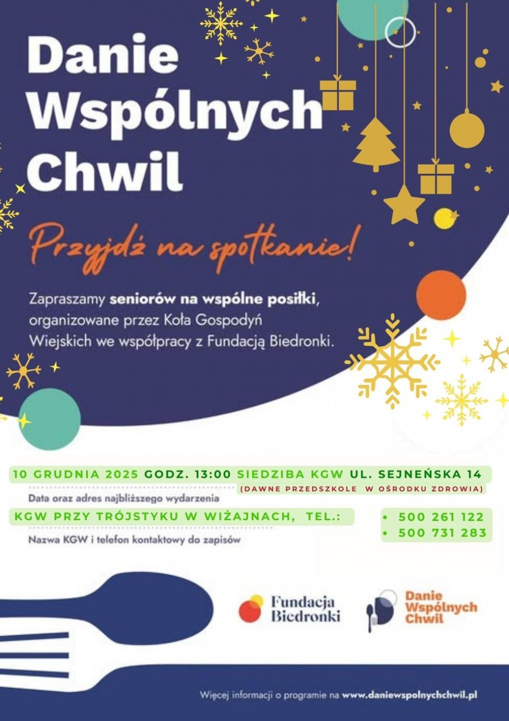 A w kolejnÄ… Å›rodÄ™ - 10 grudnia, o godz. 13.00 KGW Przy Trójstyku zaprasza Seniorów na 6-te i ostatnie spotkanie organizowane z FundacjÄ… Biedronki – informuje KGW Przy Trójstyku w Wiżajnach