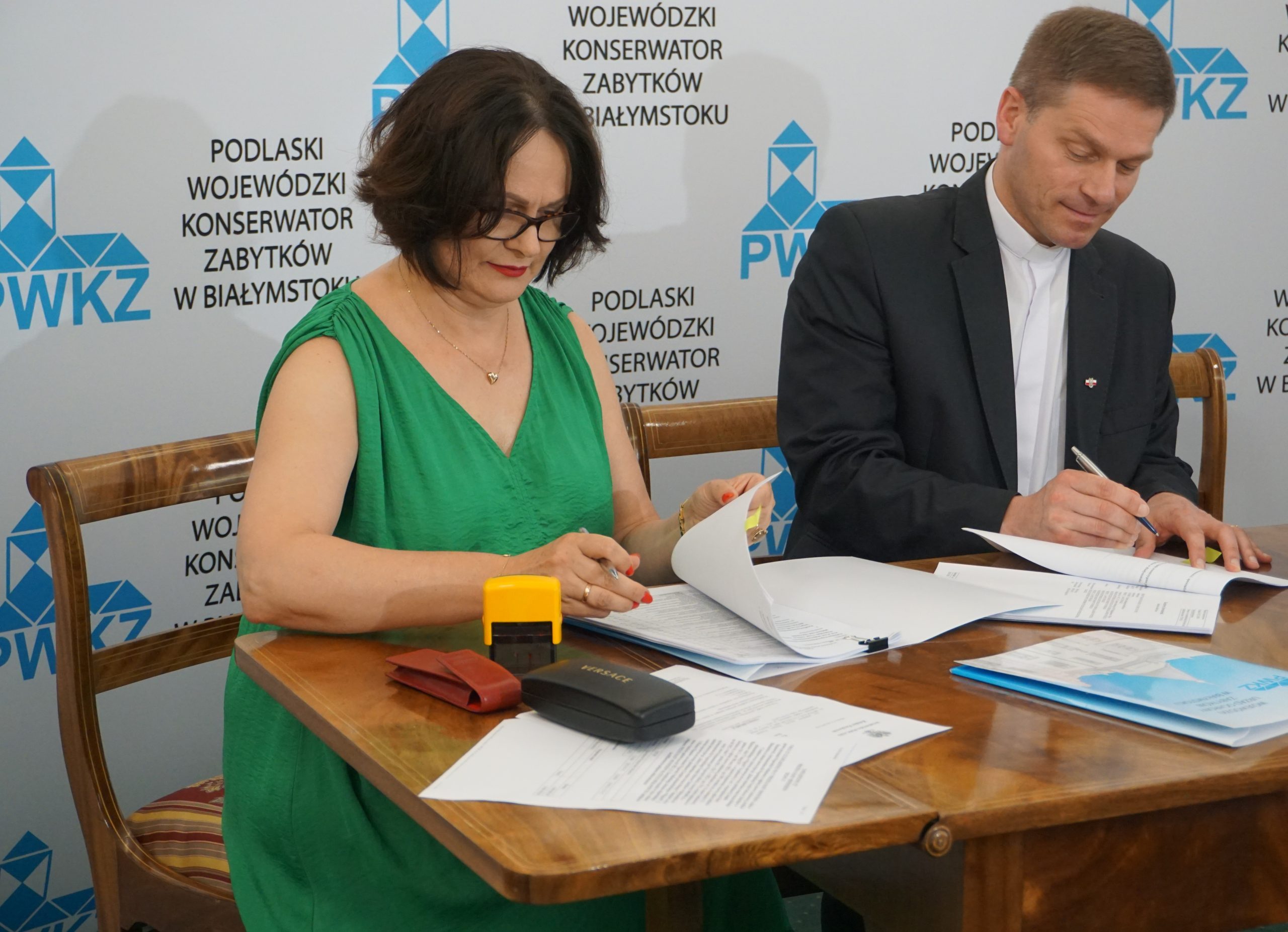 W poniedziałek, 4 lipca podpisano umowę dotacyjną pomiędzy prof. dr hab. Małgorzatą Dajnowicz – Podlaską Konserwator Zabytków, a ks. kan. dr Jackiem Nogowskim – Proboszczem Parafii Rzymskokatolickiej pw. Niepokalanego Poczęcia Najświętszej Maryi Panny w Wigrach.