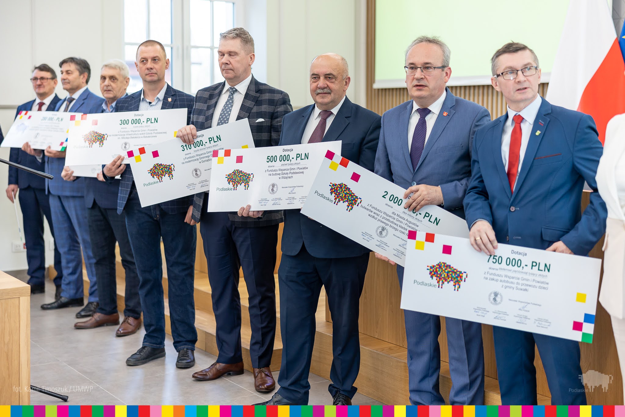 W ramach Funduszu Wsparcia Gmin i Powiatów we wtorek symboliczne czeki odebrali przedstawiciele gmin: Suwałki (750 tys. zł); Szudziałowo (200 tys. zł); Krynki (300 tys. zł); Suchowola (200 tys. zł) miasto Augustów (2 mln zł); Bakałarzewo (300 tys. zł); Puńsk (280 tys. zł); Wiżajny (500 tys. zł); Goniądz (310 tys. zł).