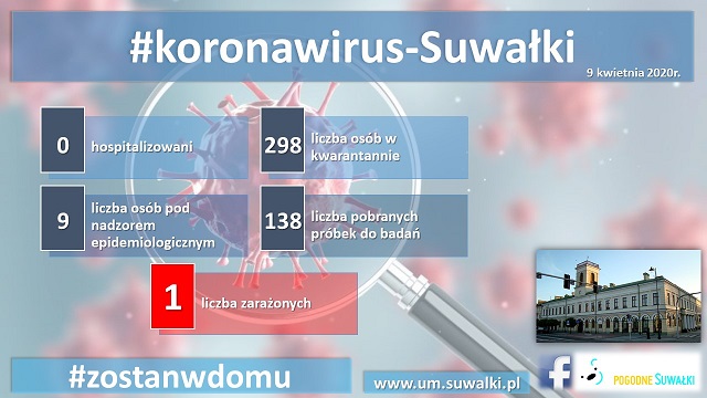 Pierwszy przypadek zachorowania na koronawirusa w Suwałkach. Chora jest kobieta w sile wieku. Czuje się dobrze. Przebywa w izolacji domowej.