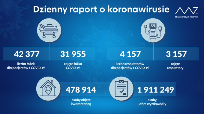 W kraju, w porównaniu do wczoraj, zajÄ™tych byÅ‚o o 14 respiratorów i o 144 Å‚óżek covidowych wiÄ™cej.