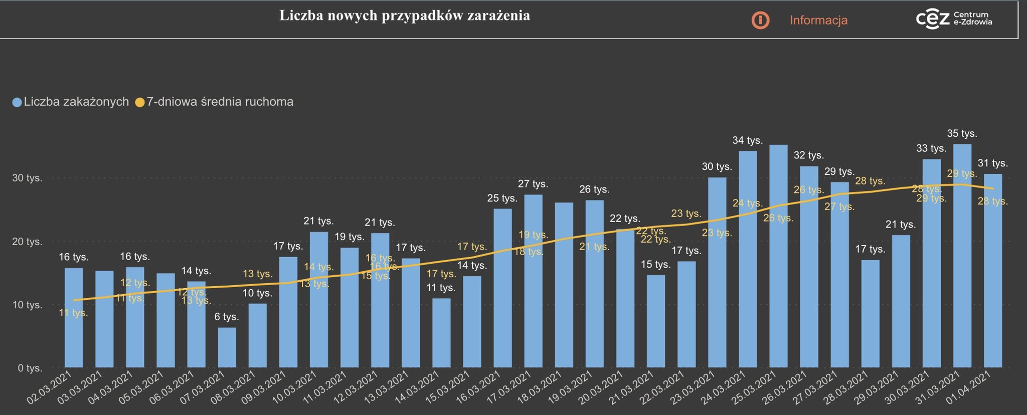 - Dzisiejsza liczba nowych zakażeÅ„ jest mniejsza o 13 proc. od odnotowanej tydzieÅ„ temu. Ten spadek ma miejsce przy 100 tys. wykonanych testów – zauważyÅ‚ minister Zdrowia Adam Niedzielski. - To kolejny sygnaÅ‚ - po malejÄ…cej liczbie zleceÅ„ POZ na testy - wskazujÄ…cy na odwrócenie tendencji w III fali. BÄ…dźmy odpowiedzialni w te ÅšwiÄ™ta!