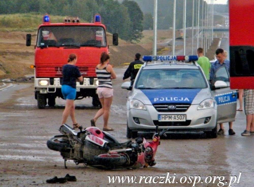 Test ekspresówki wypadÅ‚ dla mężczyzny pechowo. DoznaÅ‚ urazu gÅ‚owy, prawej rÄ™ki oraz nogi. ÅšmigÅ‚owcem przetransportowano go do szpitala. Tam oprócz badaÅ„ wewnÄ™trznych sprawdzono też zawartość alkoholu w jego organizmie. - Motorowerzysta najprawdopodobniej byÅ‚ nietrzeźwy. Pobrano mu krew do badaÅ„ - mówi Anna Chamiuk-WaÅ‚ecka z Komendy Miejskiej Policji w SuwaÅ‚kach.